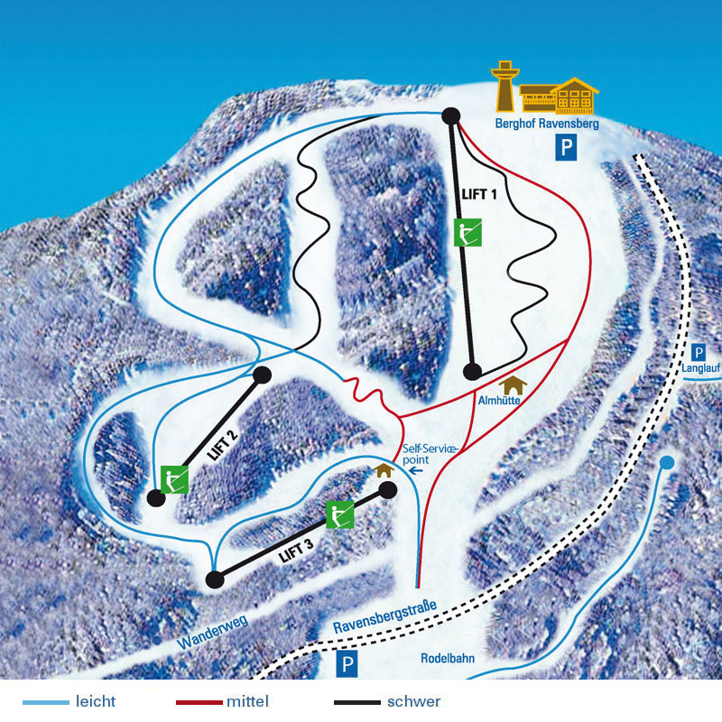 Für eine gemütliche Einkehr nach dem Skivergnügen steht die rustikale "Ravensberg-Alm" direkt im Skigebiet zur Verfügung.