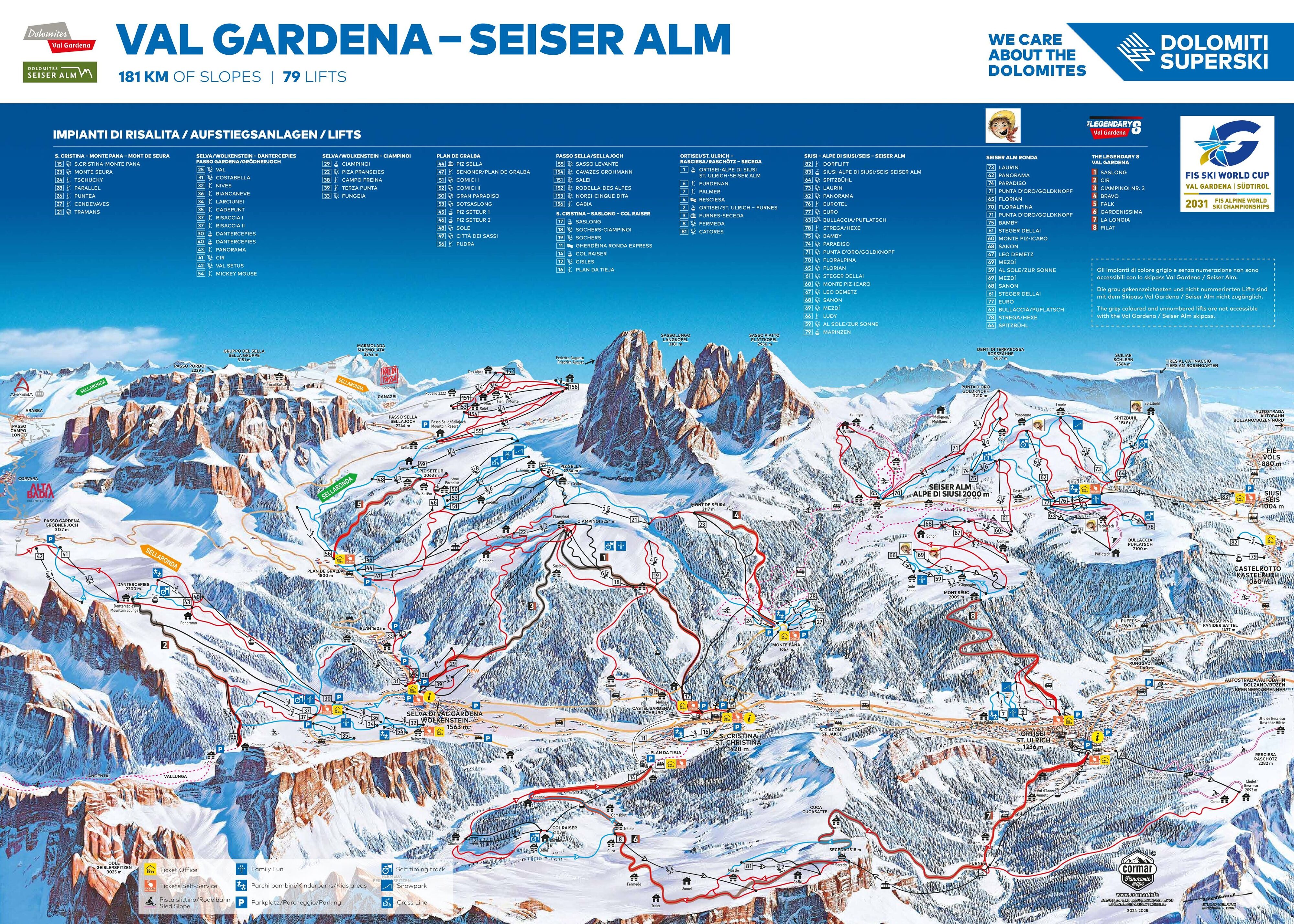 The quality of the service offered and the resulting trust of the guests are still the focus of the efforts of all ski slope operators in Val Gardena and Dolomiti Superski. The main focus is on the modernization of existing facilities and slopes to guarantee more safety, comfort and driving pleasure.