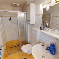 In the roomy and lovely furnished hotel apartments you find an adult sleeping room, a children sleeping room, shower/toilet, balcony, radio, television and telephone.