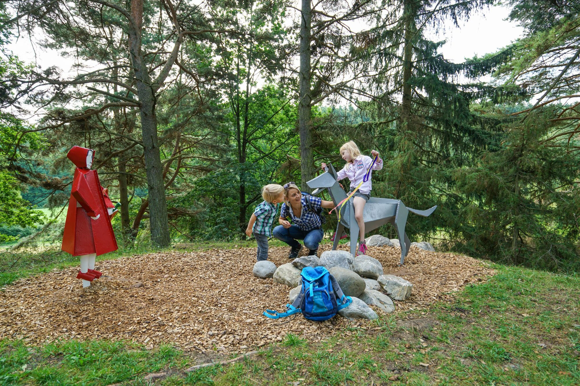 The guided fairy tale walk with stories and riddles at various figures of the Fairy Tale Trail becomes an experience for young and old. The storyteller Sigrid Maute brings the fairy tale heroes to life in her stories. The fairy tale tours are suitable for school classes, daycare groups, club groups, family groups, or as a children’s birthday outing with children from 5 years old.