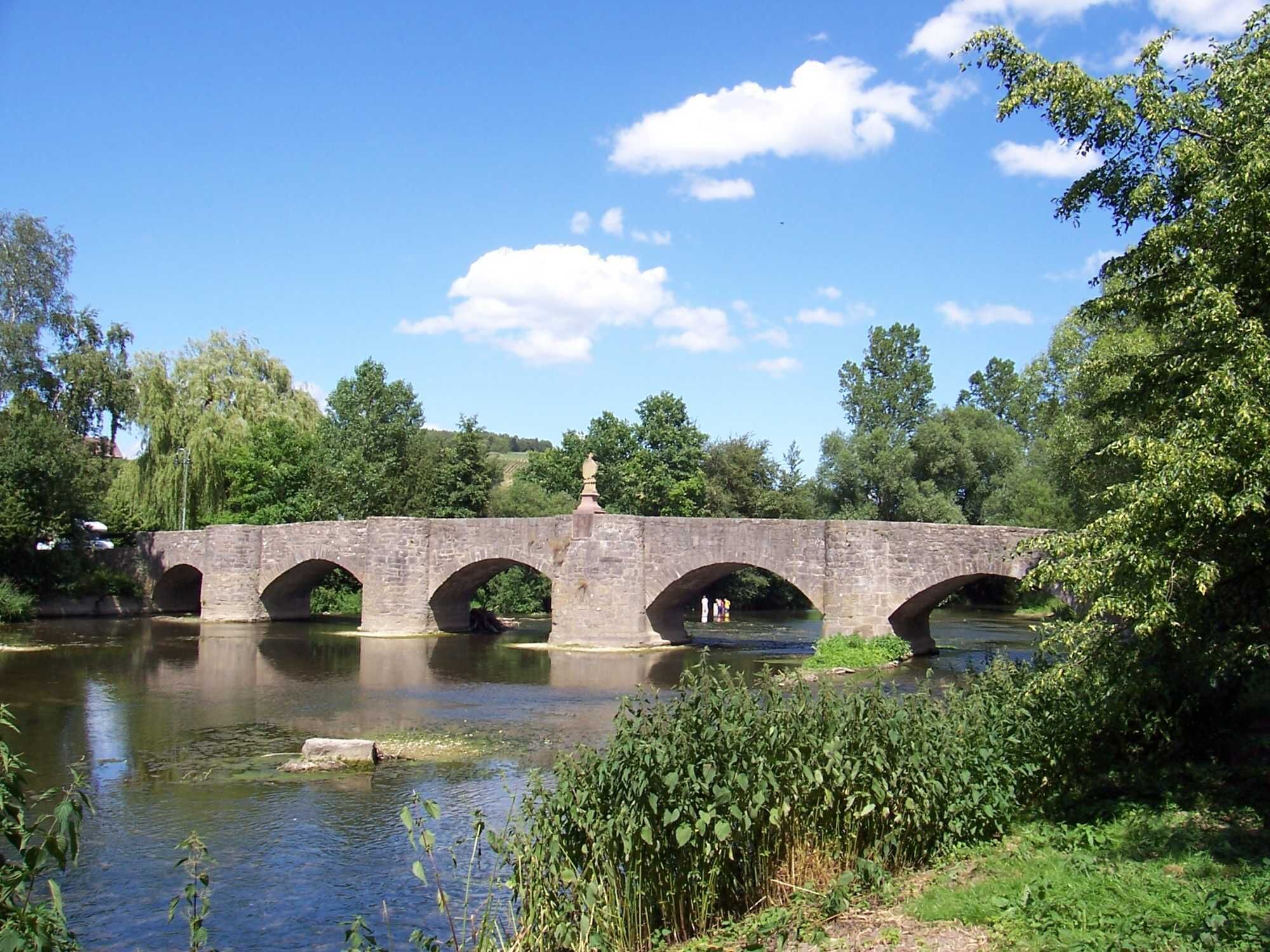 Tauberrettersheim: Tauber Bridge by Balthasar Neumann (1733), herb teaching garden with Kneipp facility