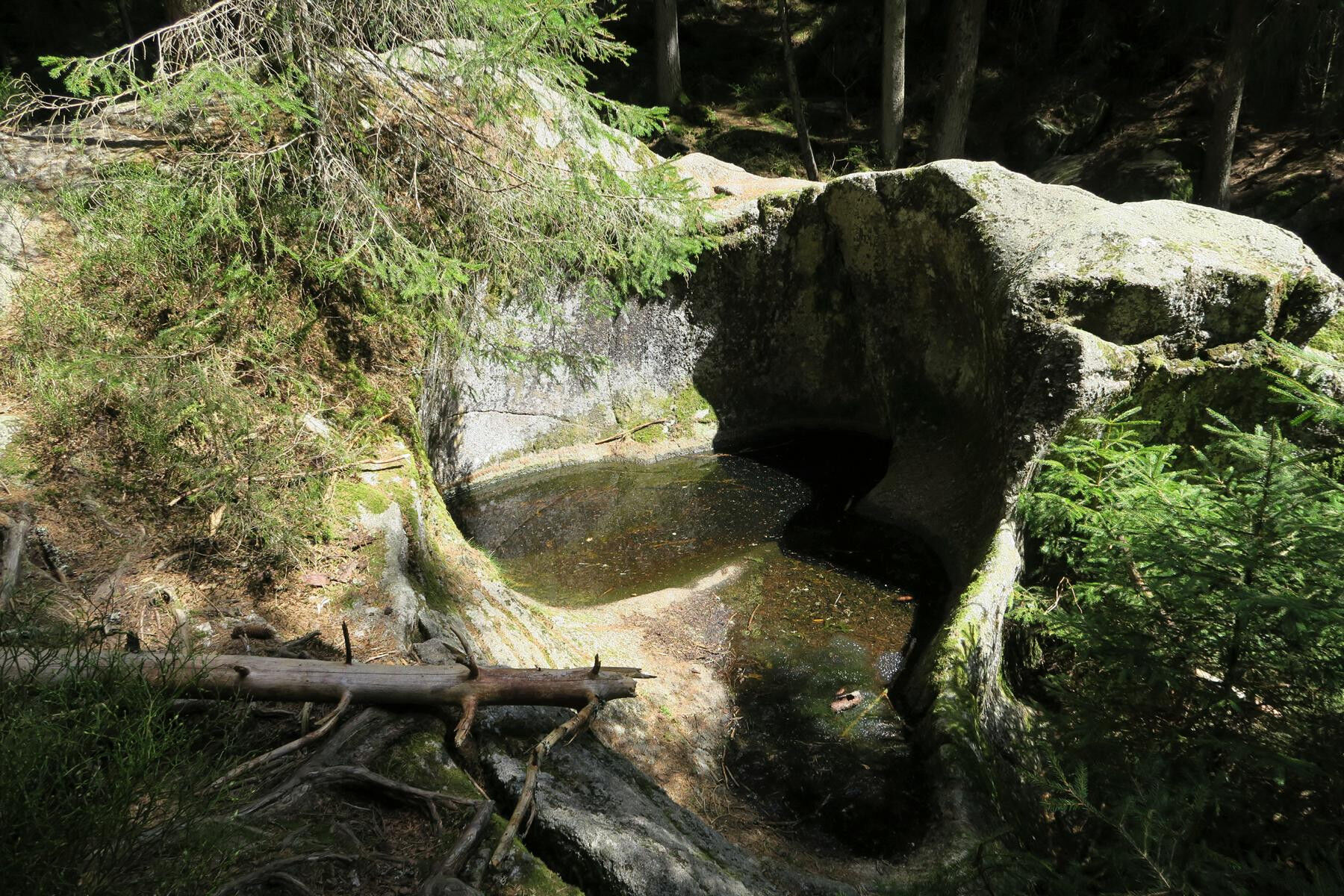 Gletschermühlen sind sehenswerte Hinterlassenschaften des Eises in ehemals glazial überprägten Gebieten. Unklar ist, ob es sich bei den Kolken am Krai-Woog-Gumpen (= „laut rauschender Wasserfall in einer...