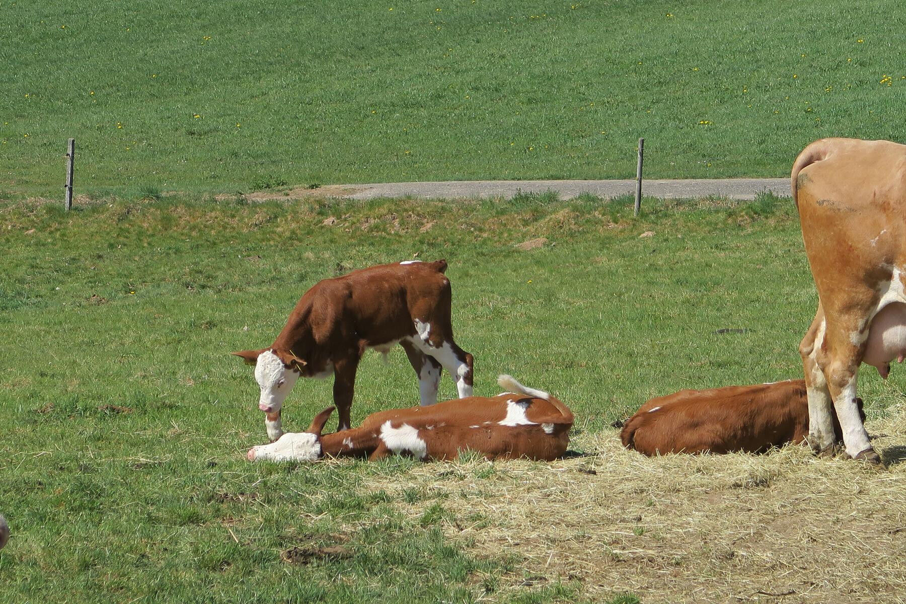 Wir starten beim Wanderparkplatz Sägmoos, 750m orientieren uns nach Nordosten und laufen gemütlich hinab zum Wühreabgang. Hunde lieben diese flachen Wasserwege, deren Ursprung bis zum Mittelalter verfolgt werden kann. Geschickt wird das Wasser dem Höllbach entnommen und in die künstlichen Kanäle geleitet. Entlang der blauen Raute geht es nun über einen breiten Weg, nach der Überquerung der Straße über einen kleinen Pfad und zuletzt entlang der Kreisstraße zur Einkehrmöglichkeit am Eichrüttehof, 780m.