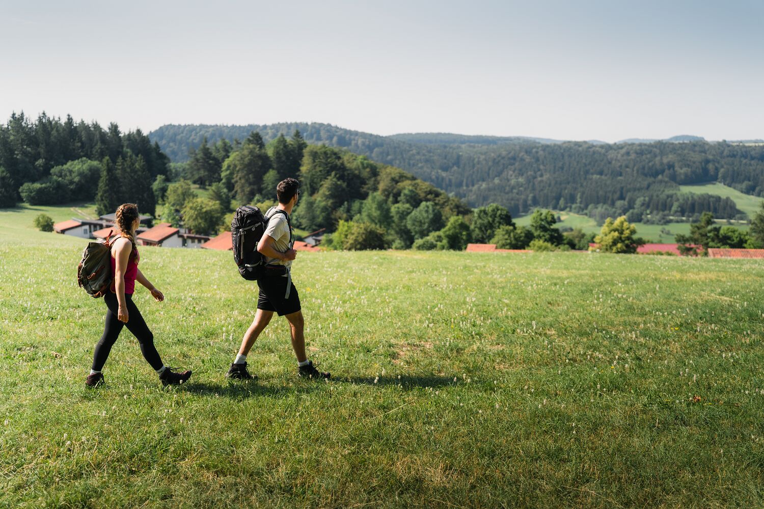 Auch der folgende Osttrauf wartet noch mit der einen oder anderen Panorama-Station auf, das Naturschutzgebiet „Hülenbuch“ mit blühenden Wiesen. Schließlich wendet sich der Weg durch unberührten Bannwald dem Wanderziel Tieringen zu, wo am Ausgangspunkt der Rundtour wie versprochen der Barfußpfad wartet. Also Schuhe aus und hinein ins Fußsohlenglück!