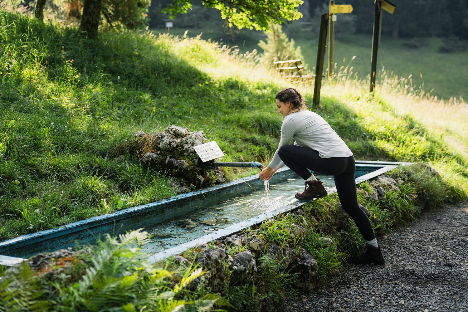 Schlichem heißt das Bächlein, durch dessen Tal die ersten Wanderkilometer führen. Üppig und artenreich wachsen Blumen, Sträucher und Bäume an seinem Ufer, bis zu seiner Quelle ist es nicht weit. Durch einen großen Hahn sprudelt das Wasser dort aus dem Berg in ein eigens angelegtes Becken, ein kühlender Zwischenstopp an heißen Sommertagen. Eine erste Vesperpause lässt sich unter anderem an der nahen Grillstelle und bei schlechtem Wetter in der Schutzhütte einlegen, die Stärkung wäre nicht unwillkommen.