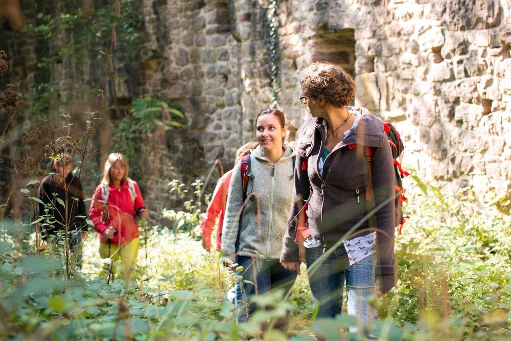 Then we reach a wider path and now follow the yellow lozenge to the left. We reach the B463, walk along a sidewalk next to the road about 200 meters to the right, and cross the Nagold over a wooden bridge. Now we should pause briefly and admire the idyllic half-timbered house with its adjoining garden. A short rest and gathering strength cannot hurt anyway, as we then have to climb steeply to reach the Waldeck Castle Ruins. Once there, we are quickly convinced that the effort was worth it. The ruins present themselves as imposing and well preserved. A tour through the former knight's castle built around 1100 is a must. There is also a cozy barbecue area inviting you to rest.