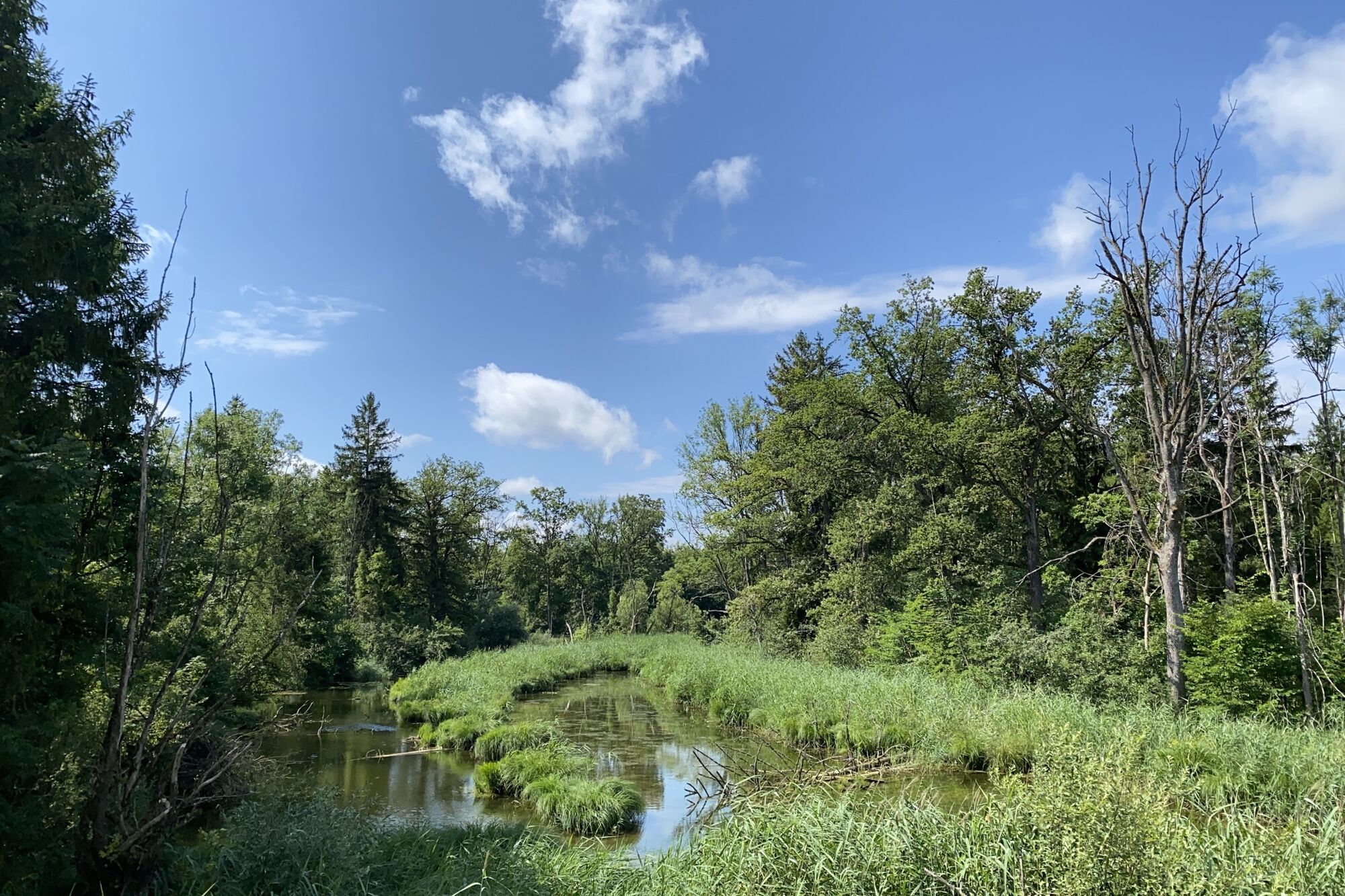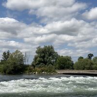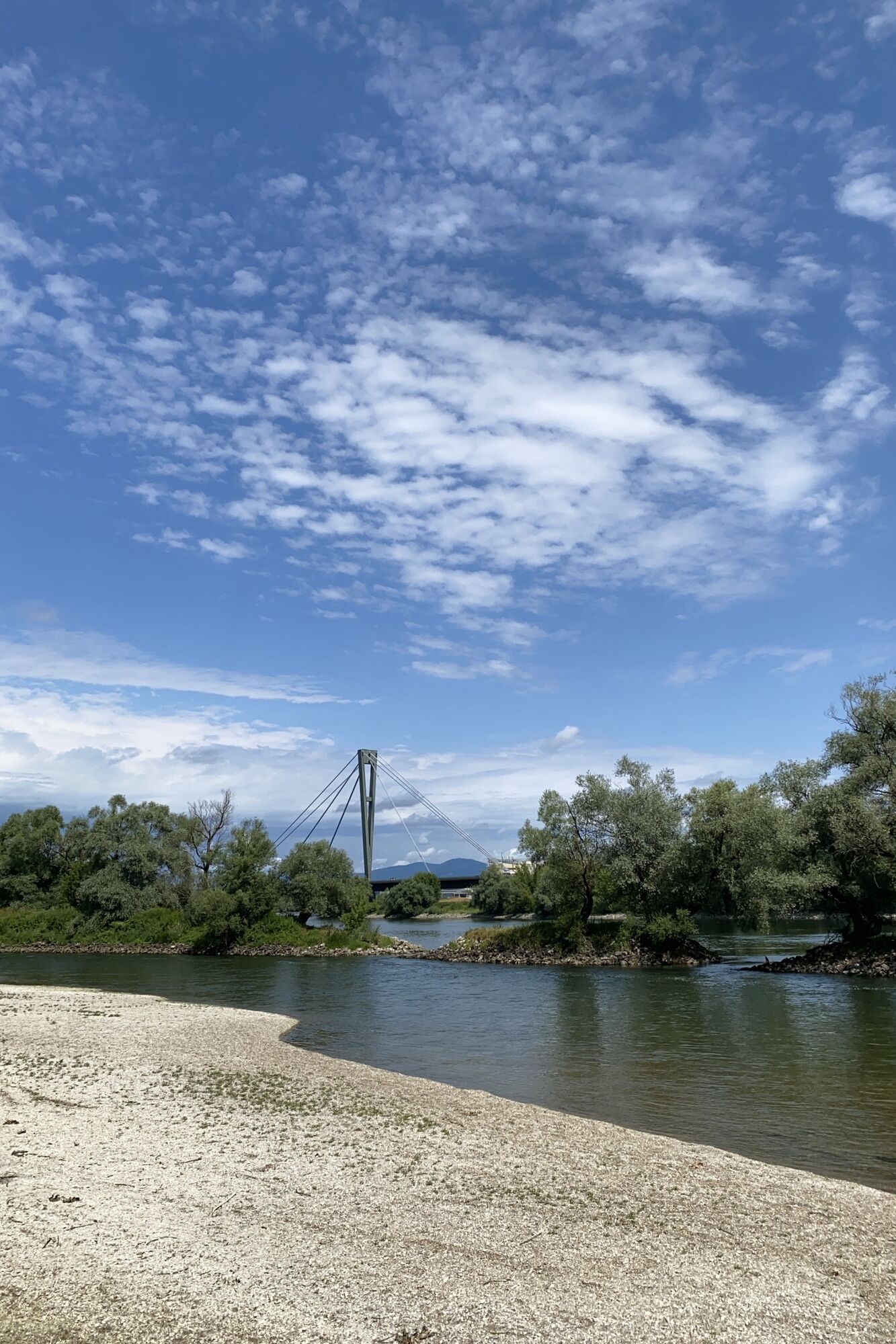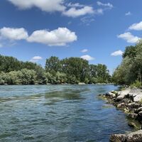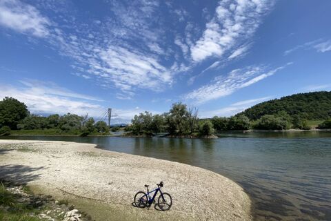 Auf guten Radwegen zT auch geteert geht es immer an der Isar entlang. Die Isarmündung ist ausgeschildert und leicht zu finden.