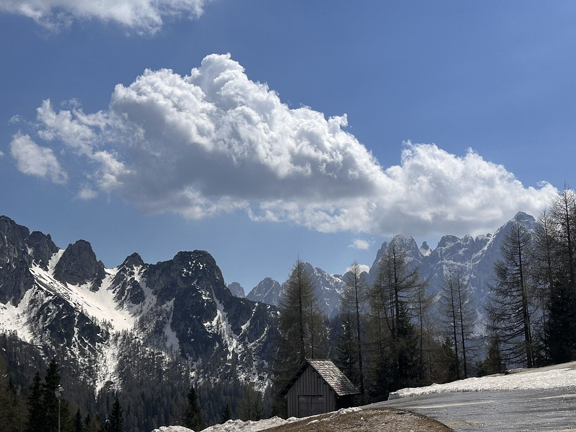 First, take the A2 south to Tarvis (ITA). Take the motorway exit there, pass through the town center, and follow the state road towards Pontebba to the roundabout, where you follow the signs for Monte Lussari. This leads you to the large parking lot, but continue a few meters further to a small parking lot in front of a stream.