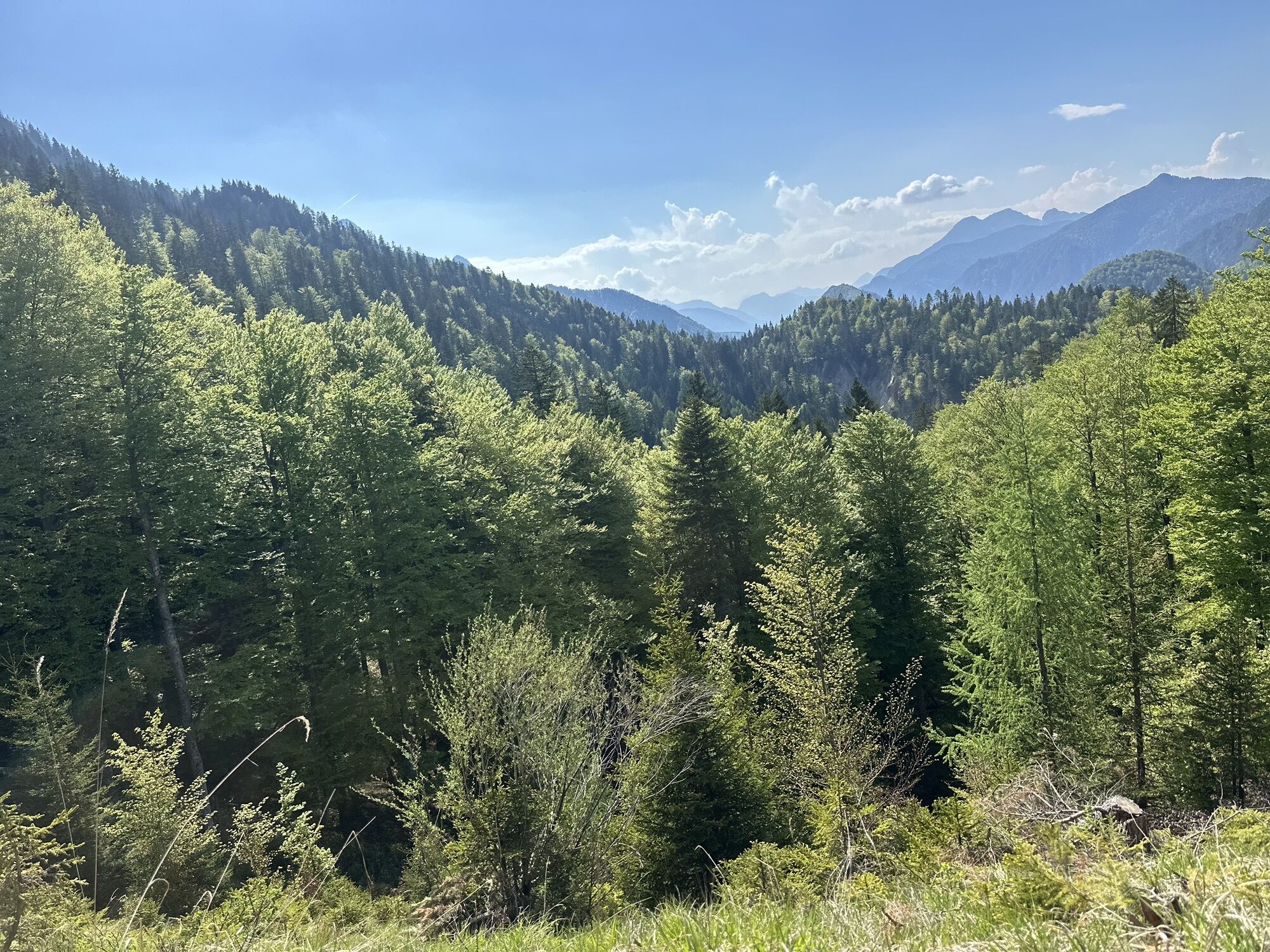 From the parking lot, cross the stream and then follow the asphalt road upwards to the start of the ravine, where the pilgrimage route begins. Follow this up to the Lussari Alm. There, turn right (west) and reach a saddle. In a few minutes, continue on a comfortable forest road heading north to Monte Lussari.