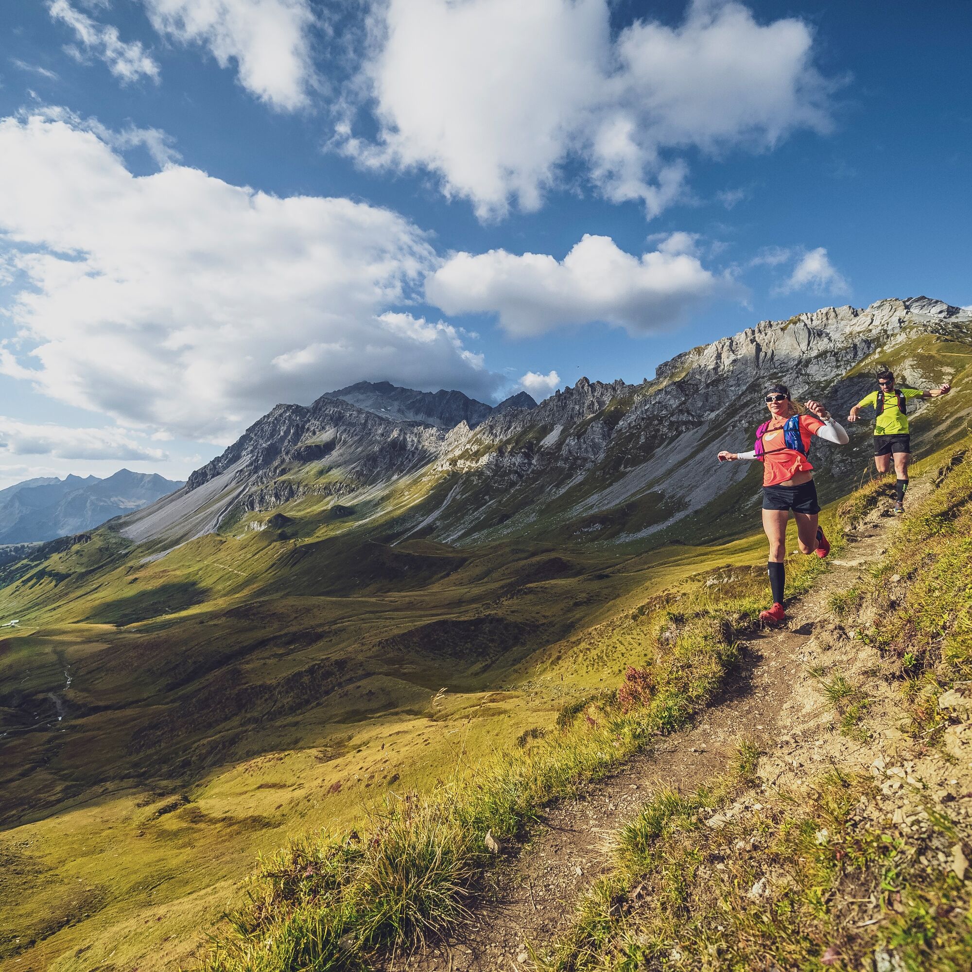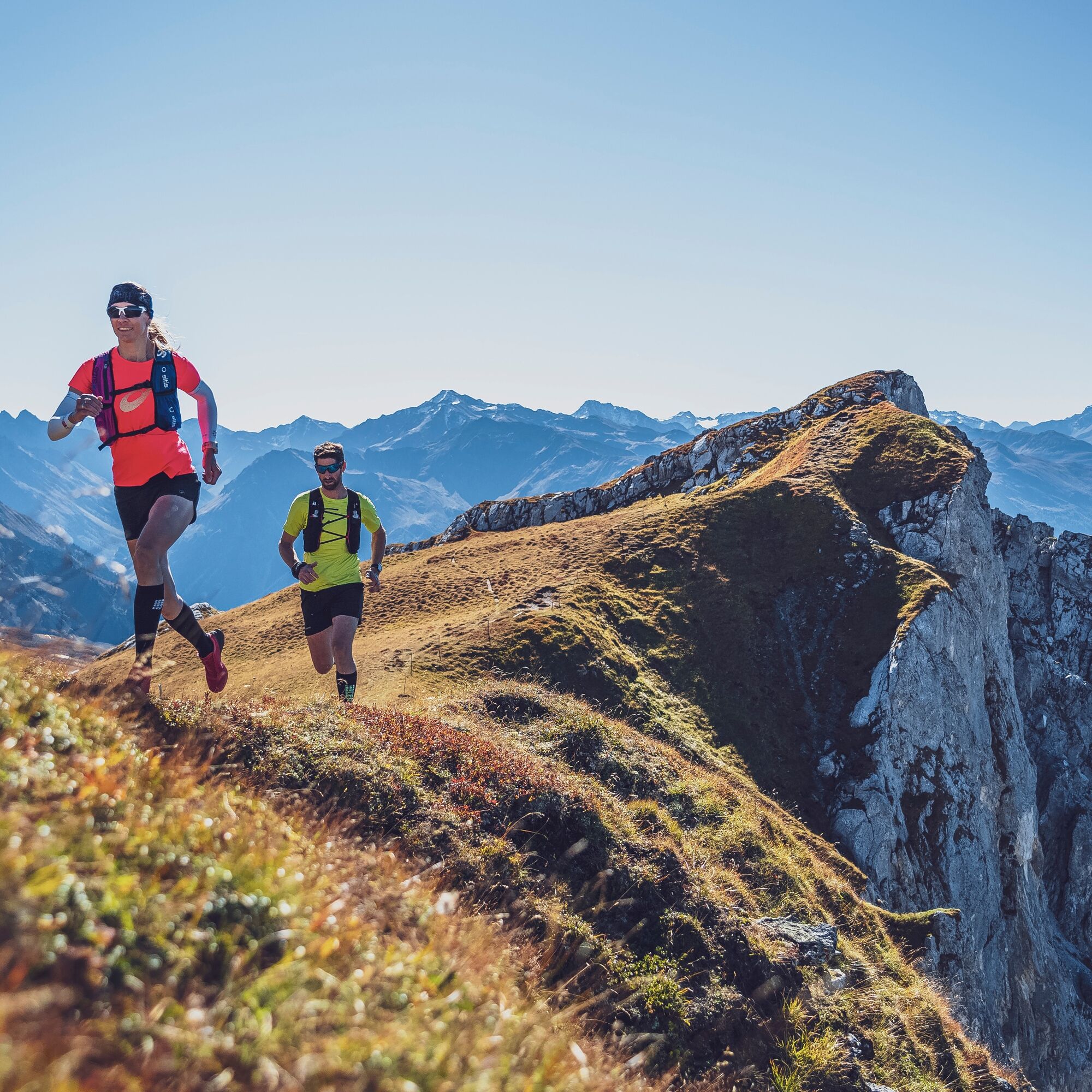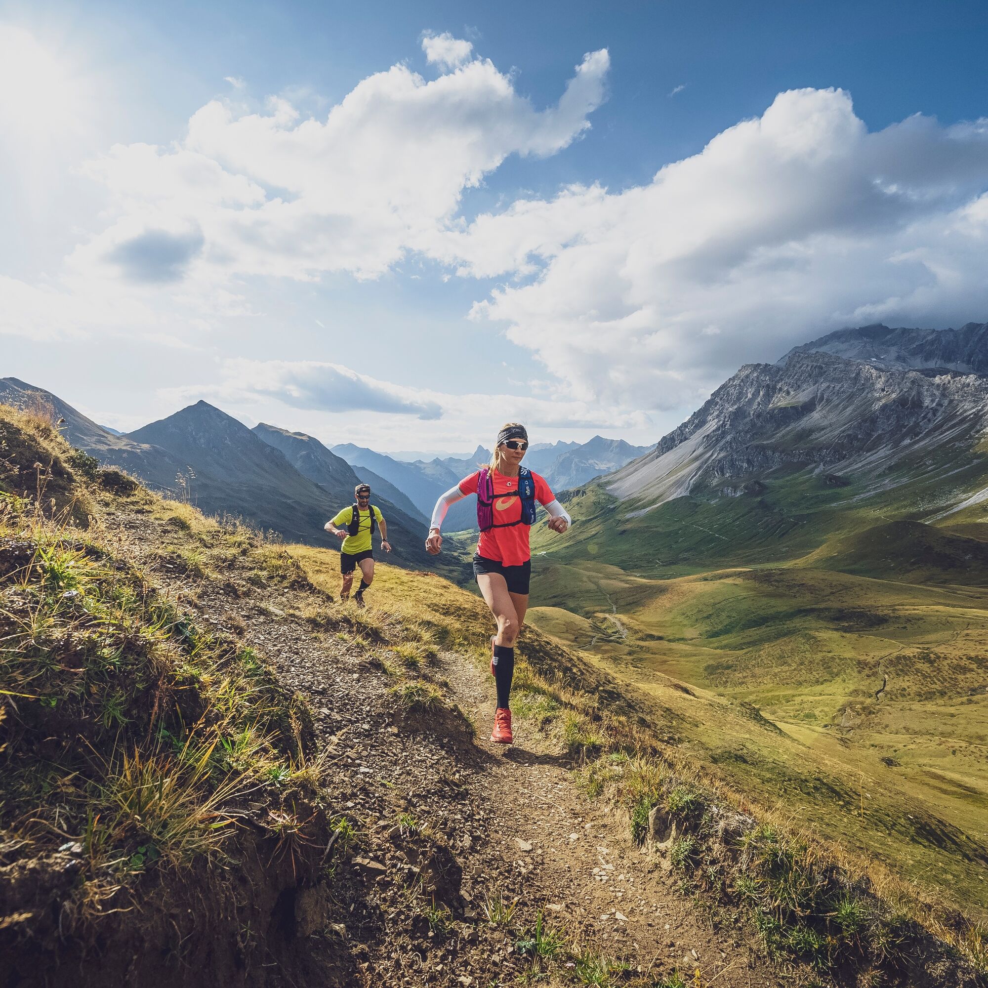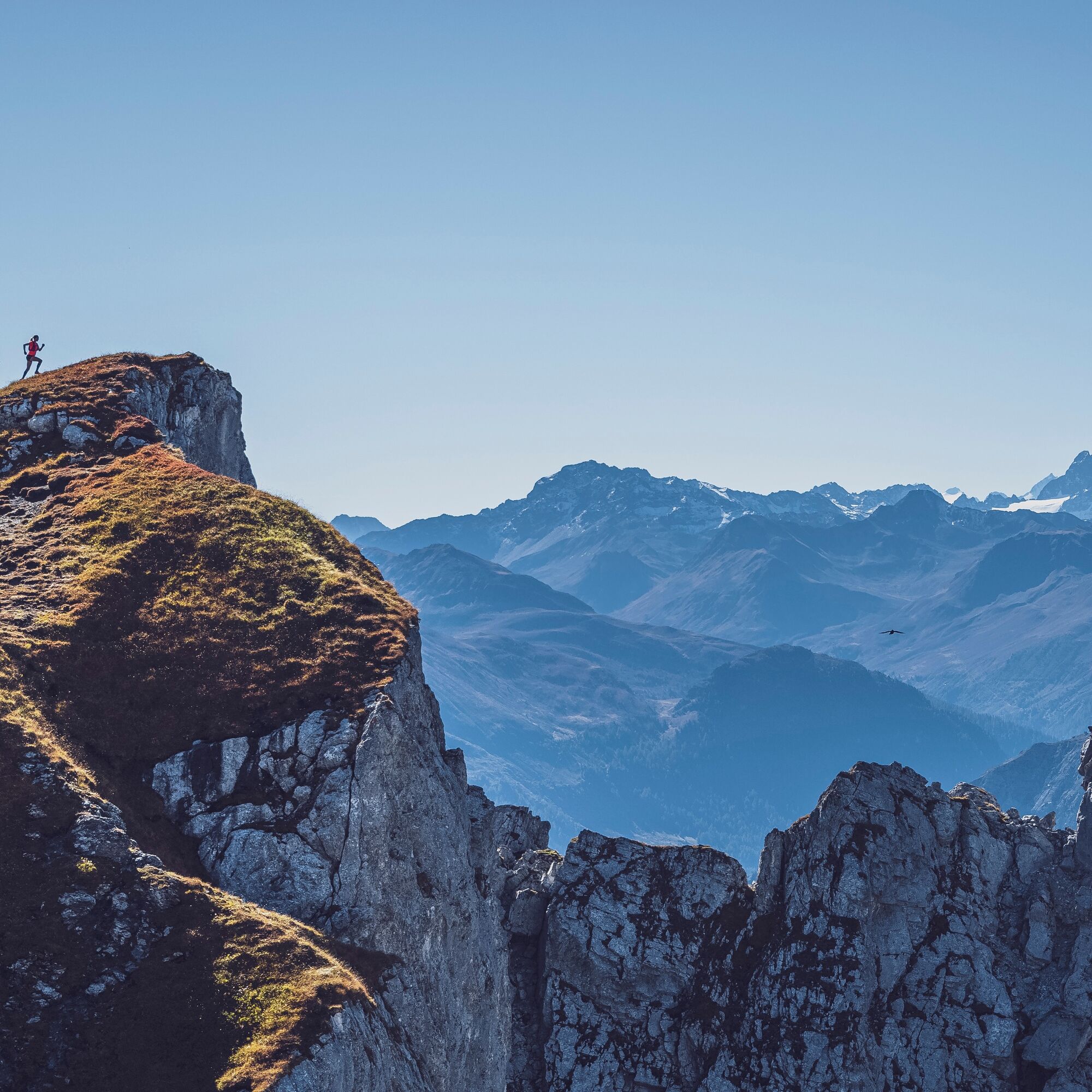 After an overnight stay in Klosters, the second day goes to the Rätikon. The Madrisabahn takes you to the starting point. Right at the start, the trail promises excitement. After the ascent to the peak of this tour, the Rätschenhorn, the route leads to the border of Austria. The ridge run along the border is certainly a highlight and offers the most beautiful views. A day full of variety awaits the trail runners and a restful overnight stay in the Walser village of St. Antönien.