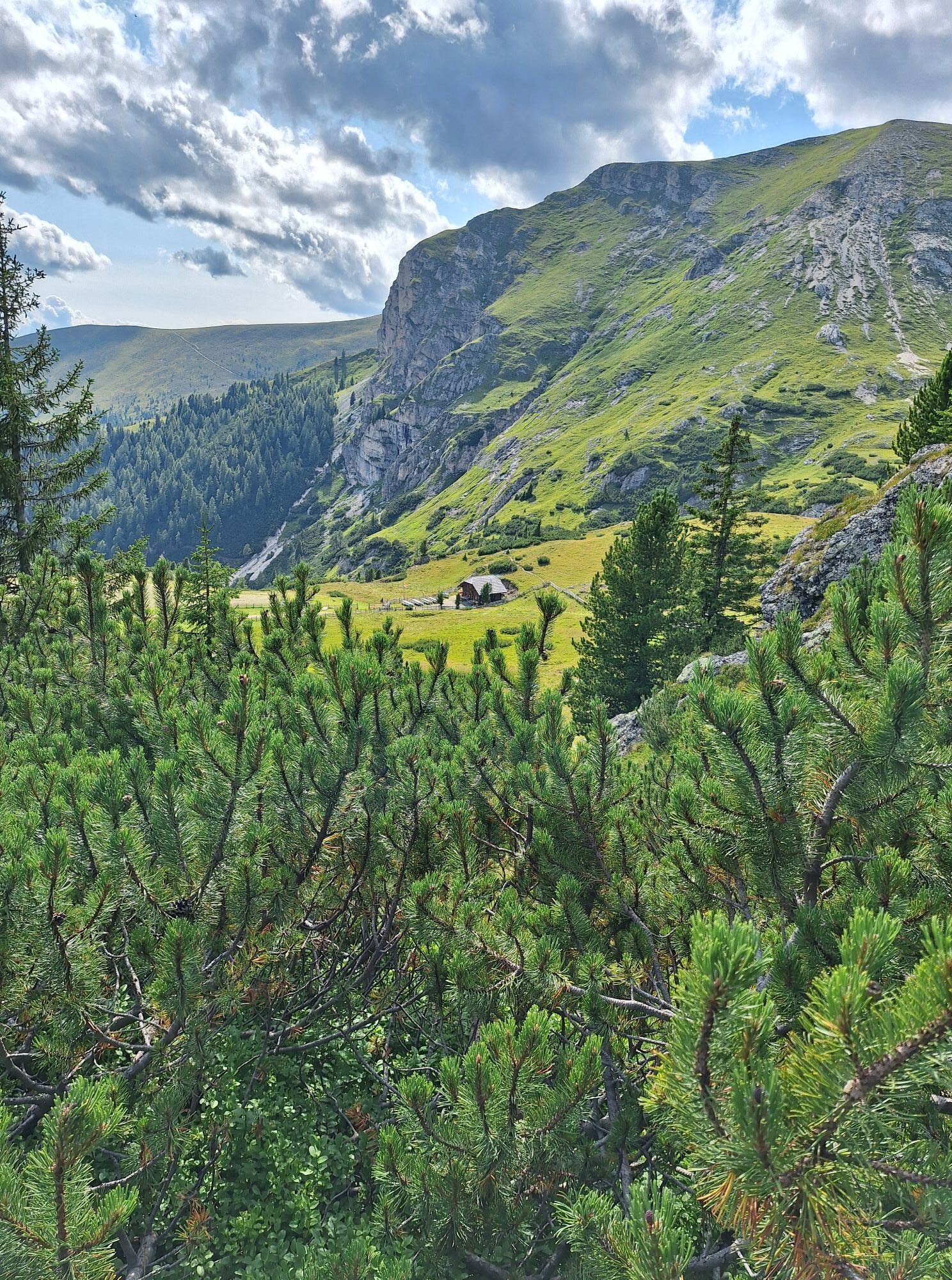 From the Pfannsee, we go towards Arkersattel, from where we also see the Kaninger Wolitzenhütte. We continue along the hiking trail to the St. Oswalder Bockhütte. There, we stop for refreshment and enjoy a delicious Kaiserschmarrn with "Grantn". If we want, we can also kneipp there and then massage ourselves with wonderfully aromatic speik oil.