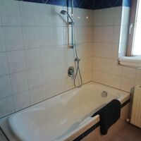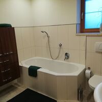Anschließend befindet sich ein großes Wohnzimmer, Schlaf-und Badezimmer mit Badewanne.