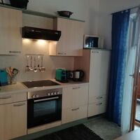 Weiters ist die Wohnung ausgestattet mit einer Wohnküche, mit diversen E-Geräten wie, Herd mit Backofen, Microwelle, Geschirrspülmaschine, Toaster, Wasserkocher, Tabs und Filterkaffeemaschine.