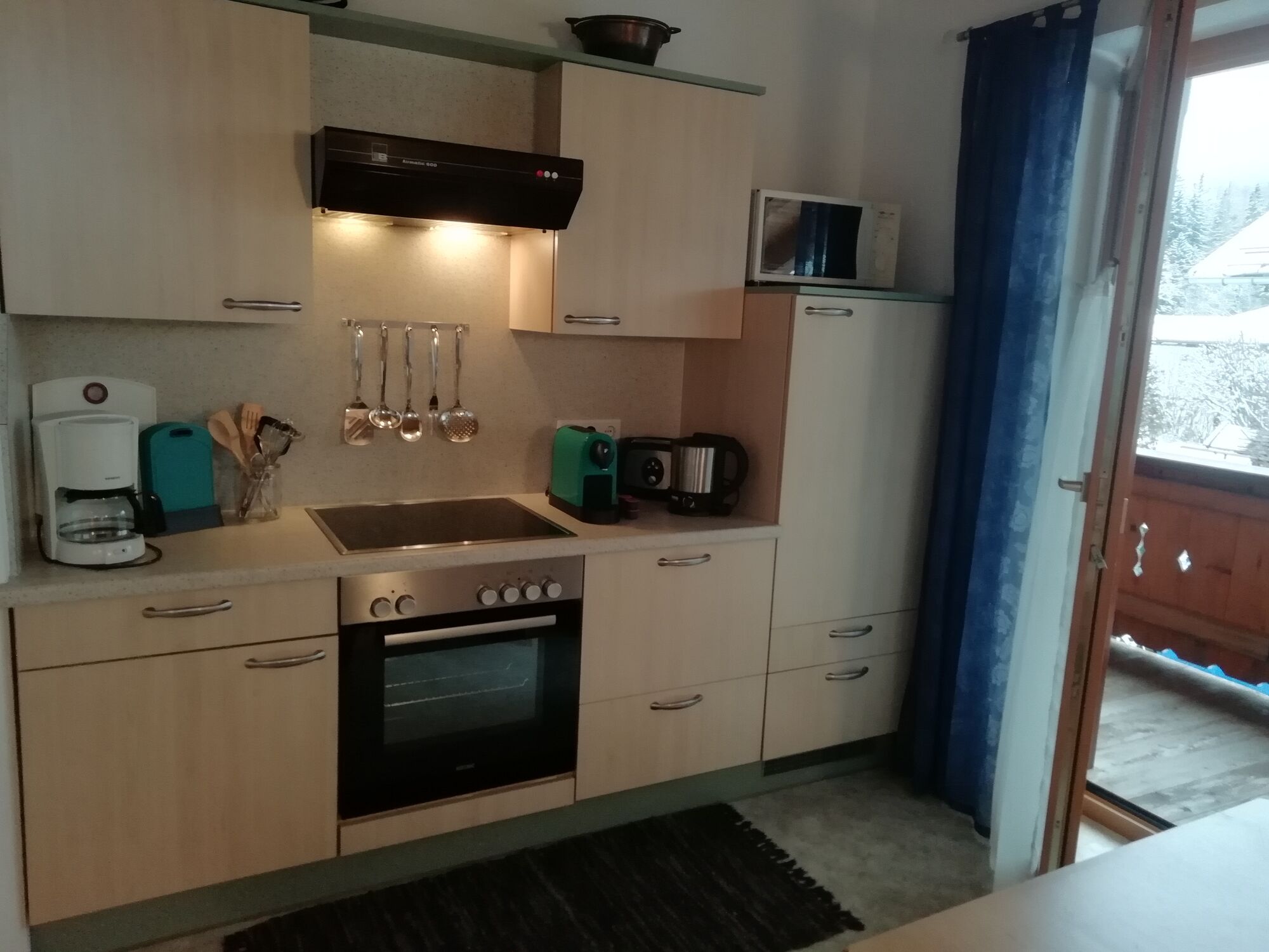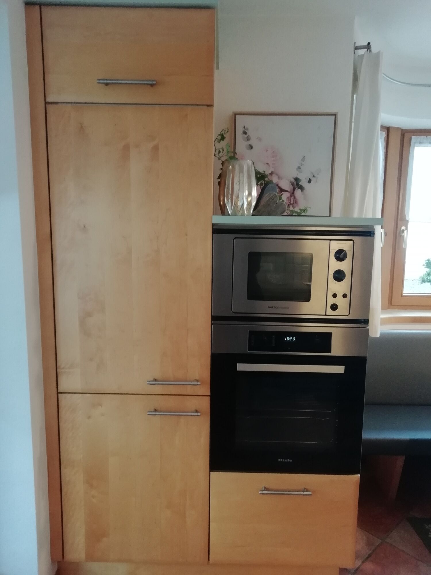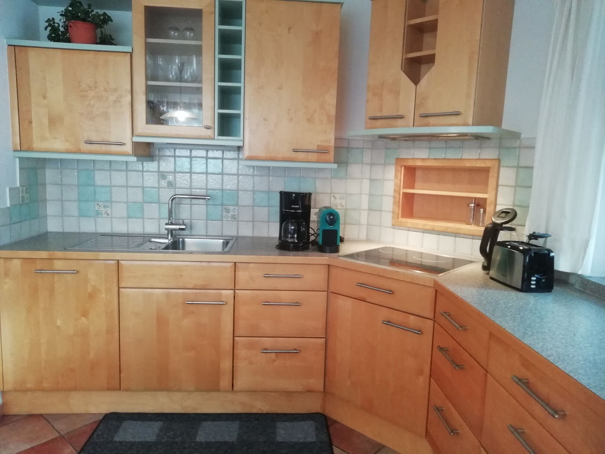 Weiters ist die Wohnung ausgestattet mit einer Wohnküche, mit diversen E-Geräten wie, Herd mit Backofen, Microwelle, Geschirrspülmaschine, Toaster, Wasserkocher, Tabs und Filterkaffeemaschine.