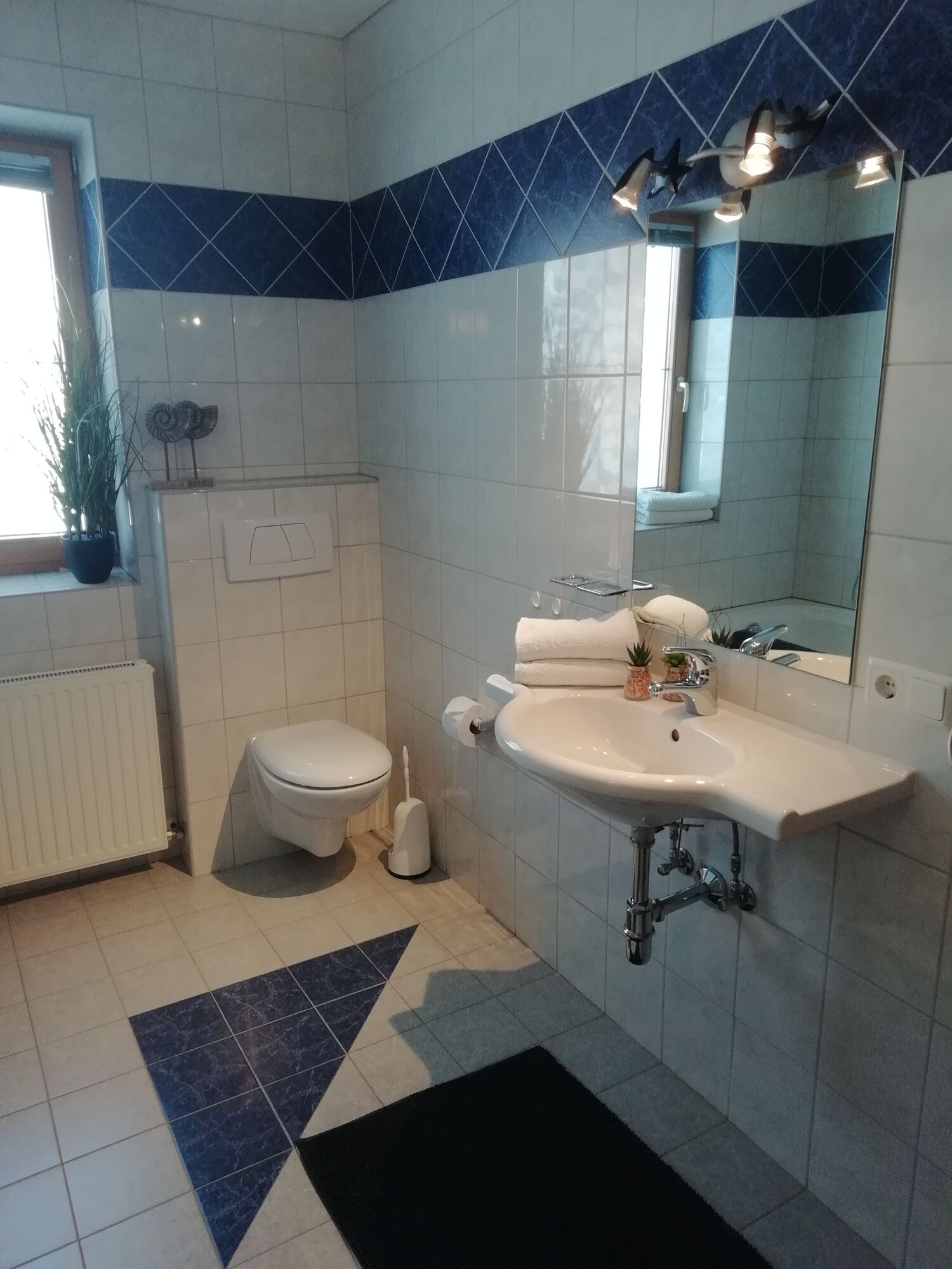 Zur weiteren Ausstattung gehört ein geräumige Wohnküche, mit einem E-Herd/Backofen, Microwelle, Kühl-und Gefrierschrank, Spülmaschine, Filter und Tapskaffeemaschine, Wasserkocher, Toaster, sowie eine elektrische Brotschneidemaschine,