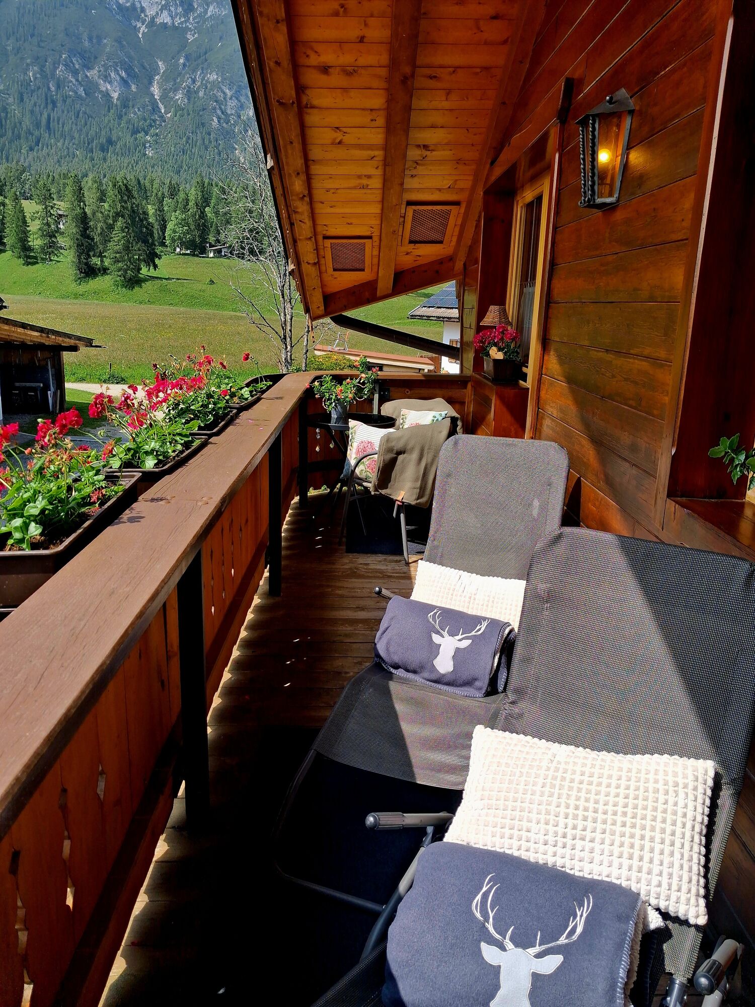 Die zweite Wohnung "Silberdistel, im 1. Stock ist ca. qm 65 groß und verfügt über zwei Balkone, Aussicht auf die Berge, Hohe Munde und Gehrenspitze.