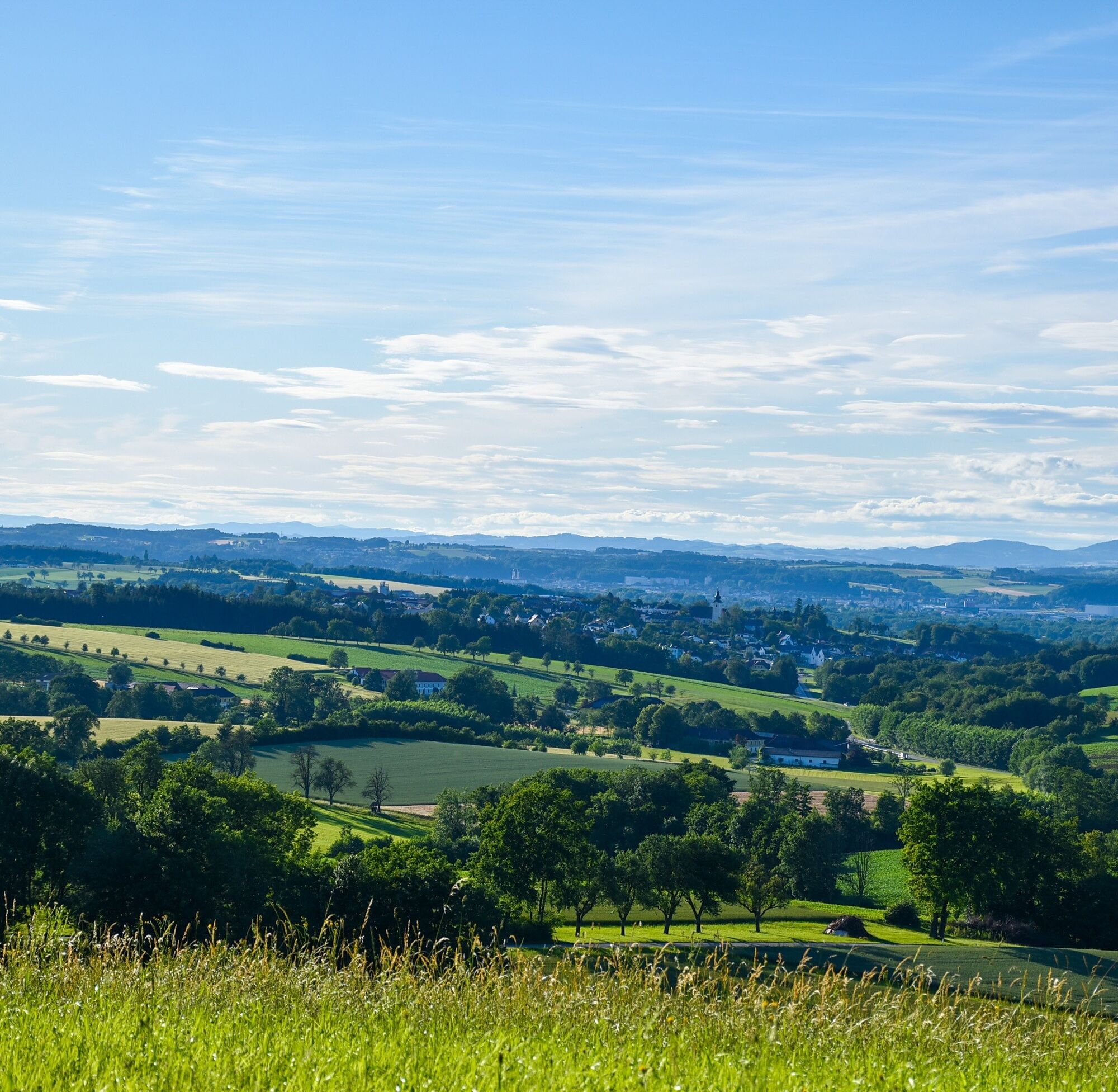 Starting from the main square, we walk a short distance along the main road and turn left into Mozart Street. Via Brunnenweg, we go down to the Stockschützenplatz, cross the bridge there, follow along the Gafring stream, enter the Guglumpf settlement, continue via Sonnenweg to the Gafring roundabout, and then take the bike and pedestrian path into Gafring. Shortly before the tavern-country hotel-cider baron - Gafringwirt, we march up left to Pollenberg, and after the cider tavern baron - Zeilinger, we turn right onto the main road and march towards Giemetsberg. After about 0.5 km, we go left down a trail to the road and then right to Friesenegg, where we walk on the left side through the farmyard along the field path towards the cider tavern - Sommereggerhof - Prigl. The path first goes down to the stream and then runs along the forest uphill to the main road. Once at the top, we march a short distance on the main road heading north/Umberg and then turn left before the forest towards Hinterholz, where we walk a bit along the path and then again on the road to Braunshof. First, Braunshof Street and then Brunnen Street lead us back to the starting point at the market square in Euratsfeld.