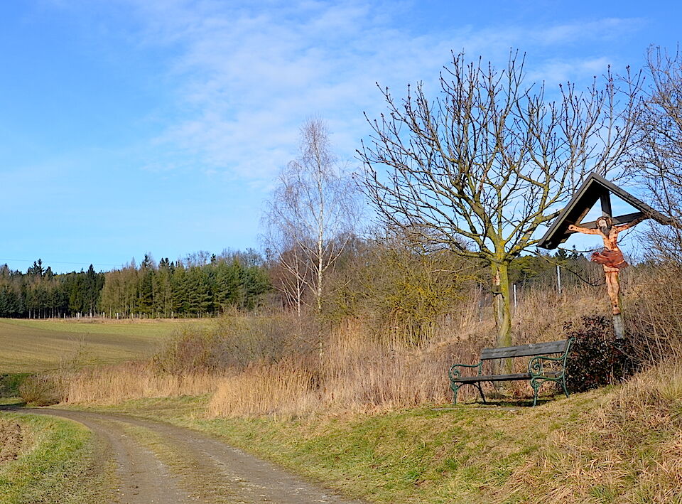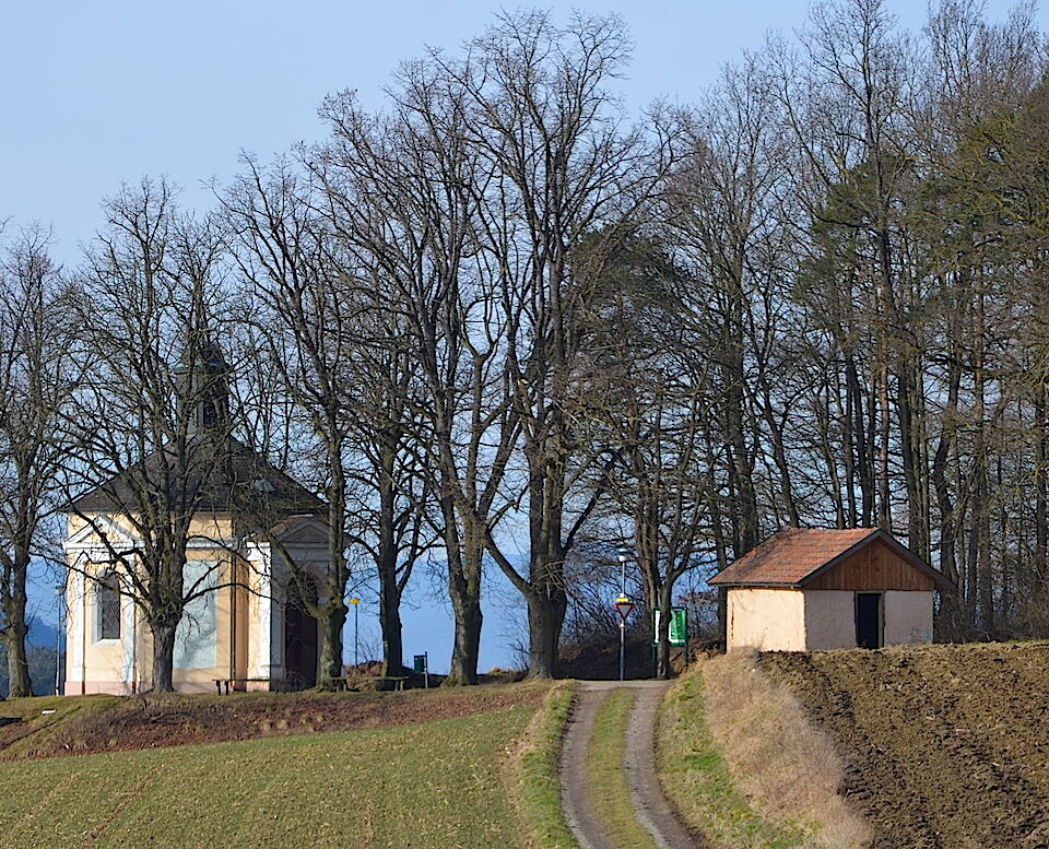 From here, the route only ascends slightly, passing again through orchards, vineyards, and fields. At the forest edge, the path crosses a section of the Way of St. James to the pilgrimage church "Maria Elend," where the inn "Osterhaus" also offers a place to stop. The way back leads again through forest, past vineyards and fields, into the charming small village of Ried near Nußdorf ob der Traisen.