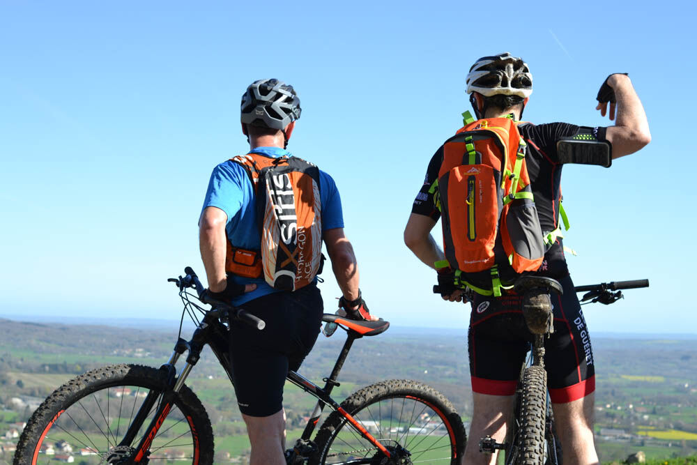 Use the marked trails for your safety and respect the direction of the routes Do not overestimate your abilities and keep control of your speed Be careful and courteous when overtaking or crossing hikers because pedestrians have priority Check the condition of your mountain bike and plan for supplies and repair tools If you go alone, leave your route with someone you trust Wearing a helmet is highly recommended Respect private properties and cultivated areas Be careful of agricultural and forestry machinery Close all gates behind you Avoid picking wild flowers, fruits, and mushrooms Do not disturb the peace of wild animals Keep your trash, be discreet and respectful of the environment