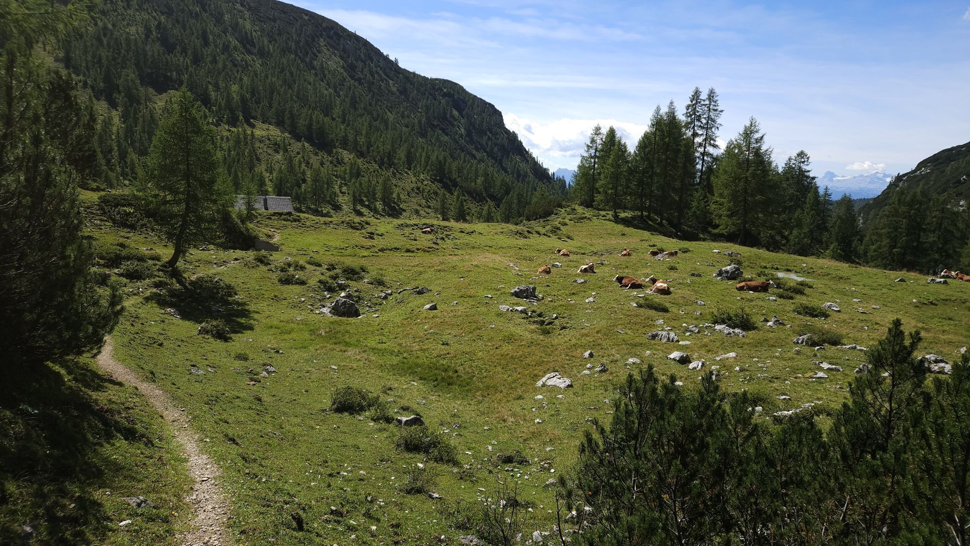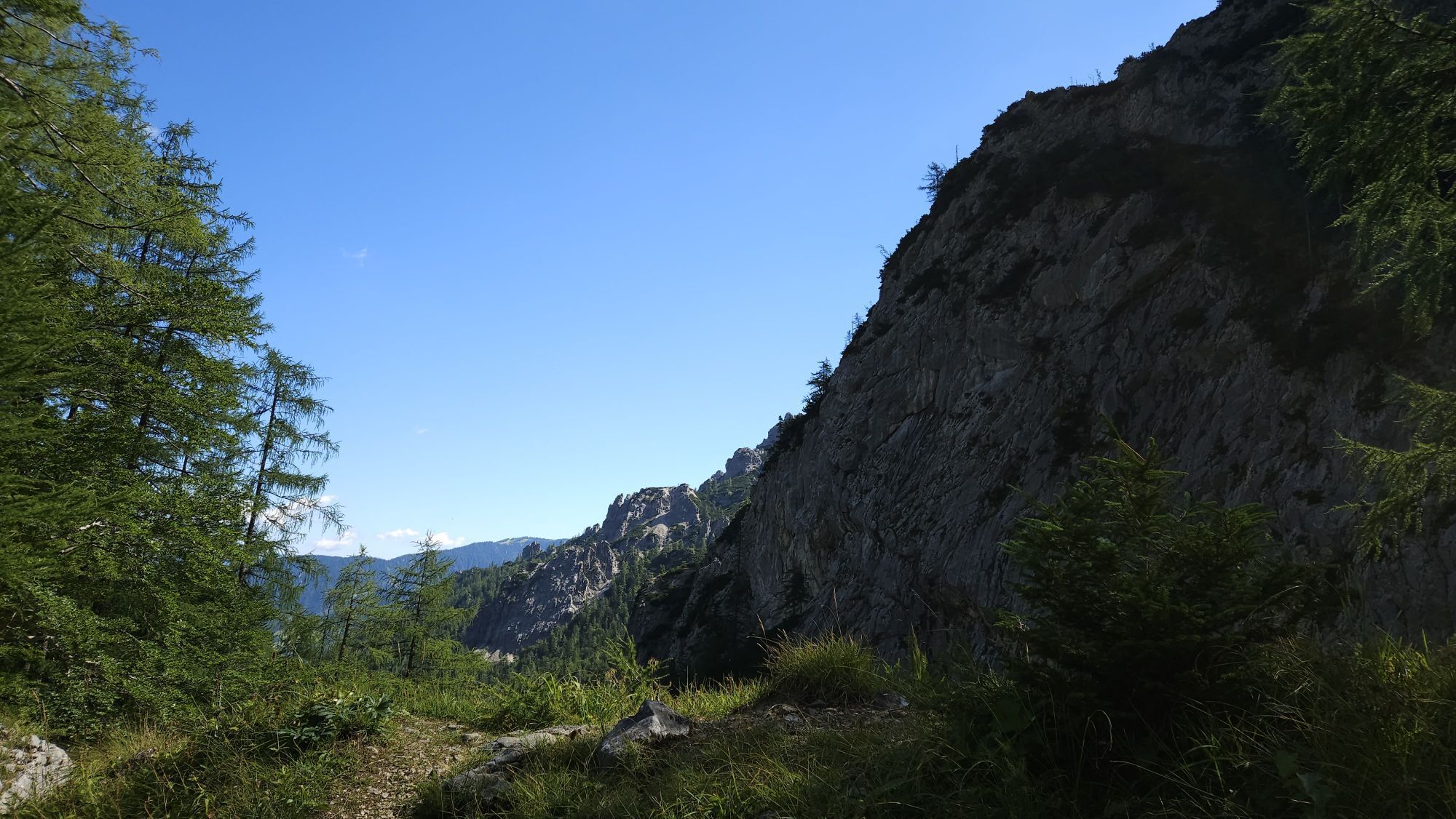 Schwierigkeitsgrad: Schwarz: Forststraße, alpiner Steig (Seilsicherung), Almweg