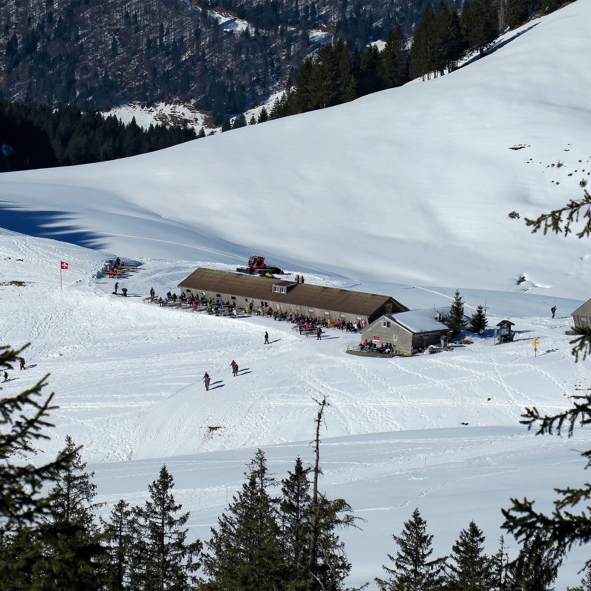 From the old ski lift parking lot, first go over Eggli to Wier. Then we skin through the winter landscape over the Vorder Höhi up to the Gulme. But the best is yet to come: the descent through the forests and snow-covered meadows back to the starting point.