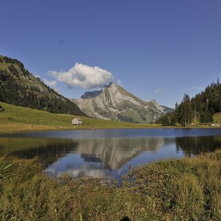 Lake Gräppel lies wonderfully at the foot of Lütispitz. On the circular hike from Unterwasser, the small lake directly invites you to jump in at your own risk.