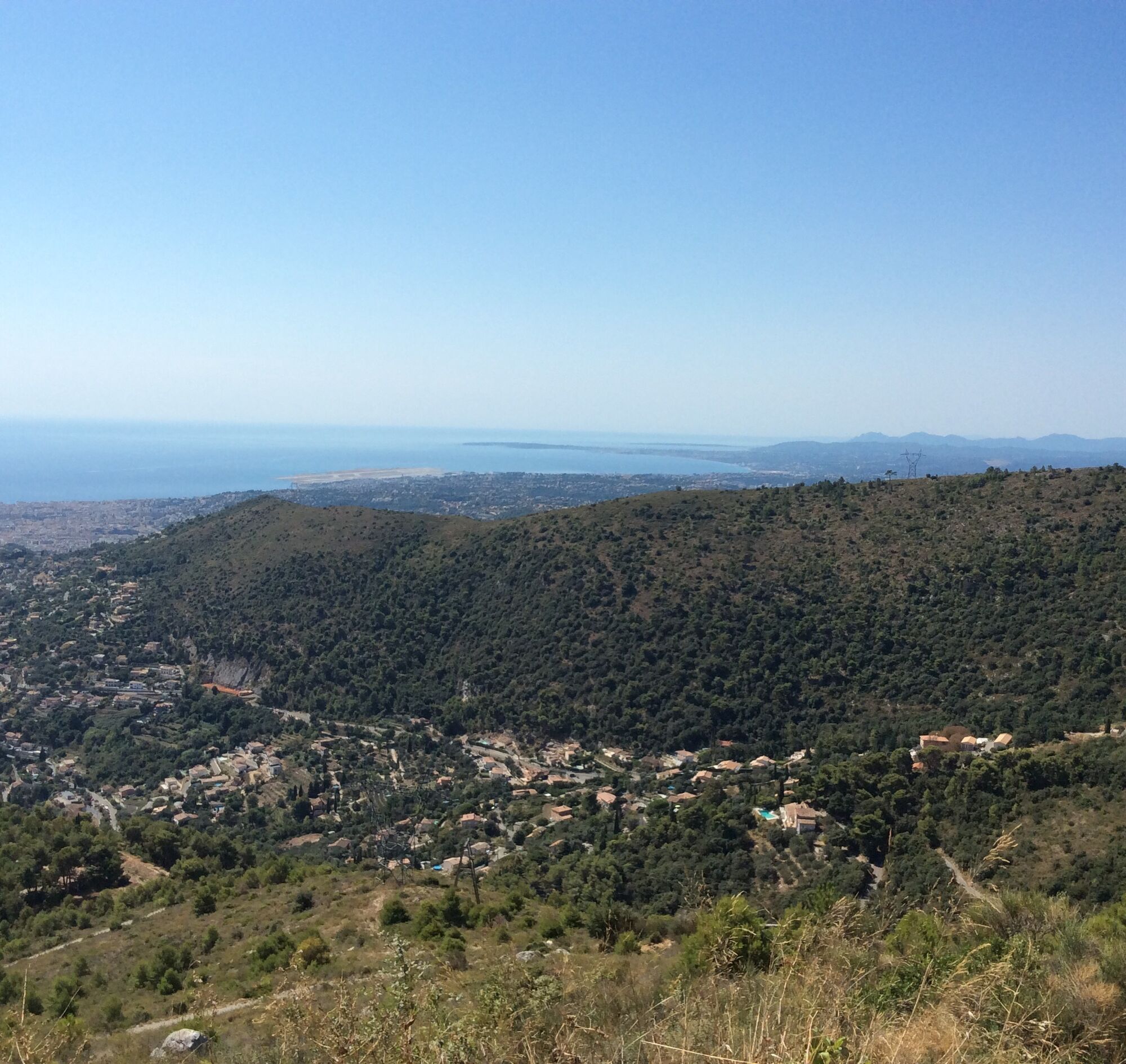 The higher you climb, the wider the landscape becomes; you can see Cap d’Antibes to the right, the Lerins islands, and the Esterel massif in the distance. It was in this section that the film « les cracks » (1968) with Bourvil was shot!