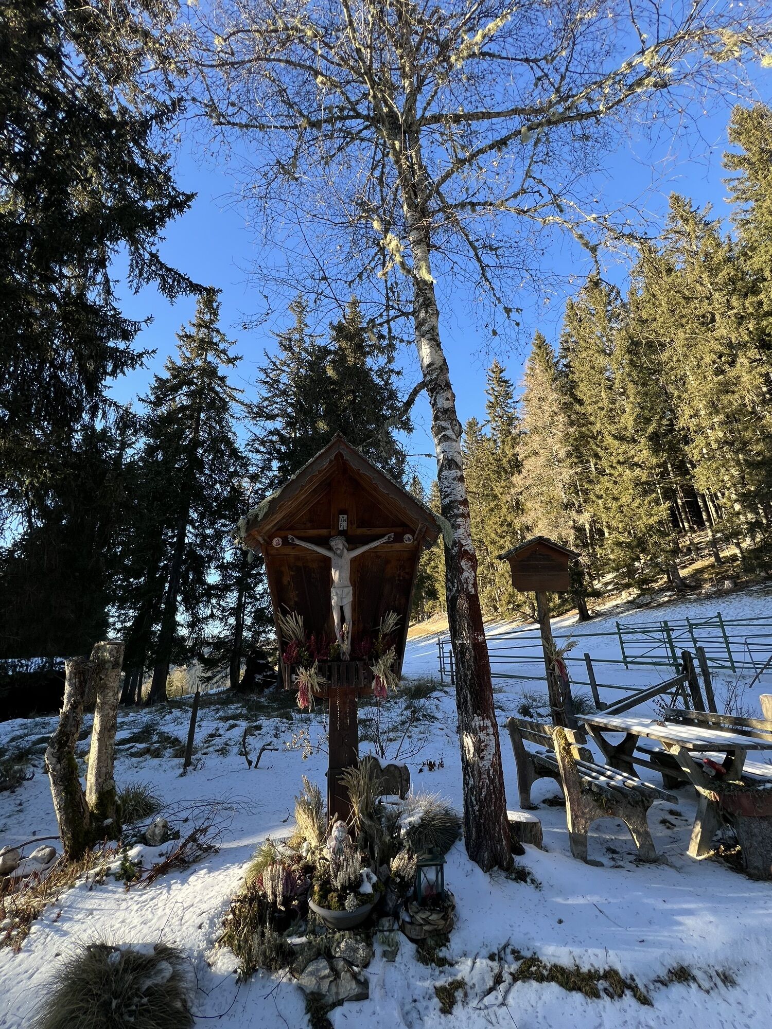 Von der Hütte wäre eine Wanderung zur Kapelle über einen beschilderten Pfad möglich (ca. 15min.).