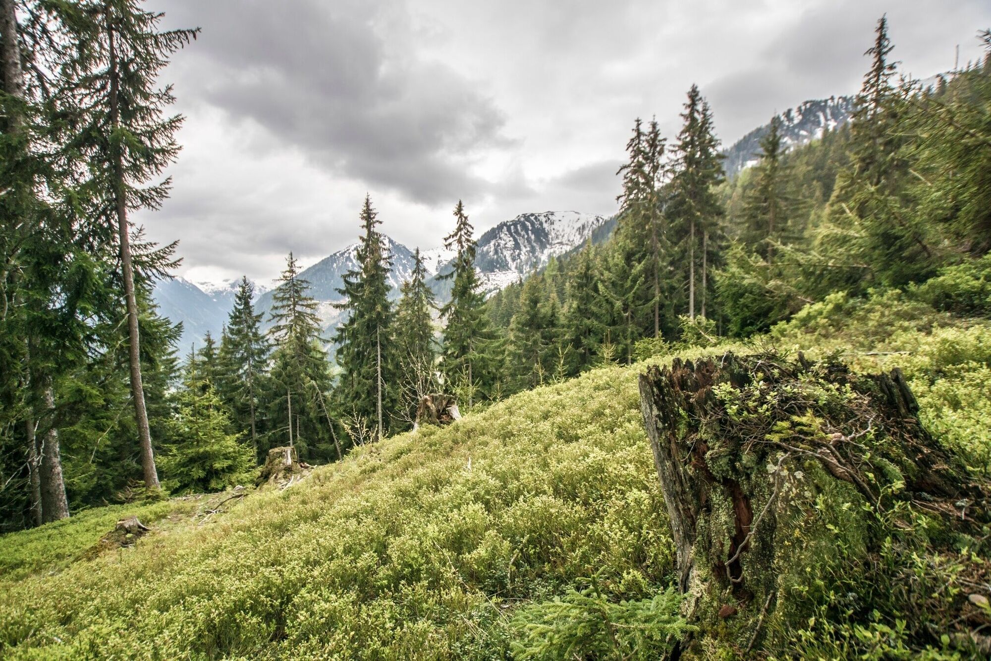 Hier folgst Du erst weiter dem Wanderweg #60 ("Bankerlweg") unterhalb der Hochwurzenhütte vorbei und läufst dann an der Hochwurzenalm (nur im Winter geöffnet) über die "Kleine Wurzen" bis Du auf den 4-Jahreszeiten-Weg (Forstweg) triffst. Diesem folgst Du nach rechts und bei der 1. Wegkreuzung auf dem Hüttecksattel (in ca. 150 m) hältst Du Dich links (Richtung Rossfeld). Kurz darauf erreichst Du das 2. Wegkreuz am Sattel wo Du nun links auf den Weg #61 Richtung Rohrmoos und Obertal bergab abzweigst. Durch den Hochwald läufst Du nun talwärts. Du querst eine Forstraße (hier schließt von rechts der Wanderweg #773 sowie der Laubschachen Trail zu Deiner Route an) und läufst weiter bergab durch einen Holzschlag. Weiter unten kommst Du - in einer scharfen Rechtskurve - wieder auf einen Forstweg (Weg #61), welcher direkt zurück zum Wanderportal Hochwurzen an der Talstation der Gipfelbahn führt.
