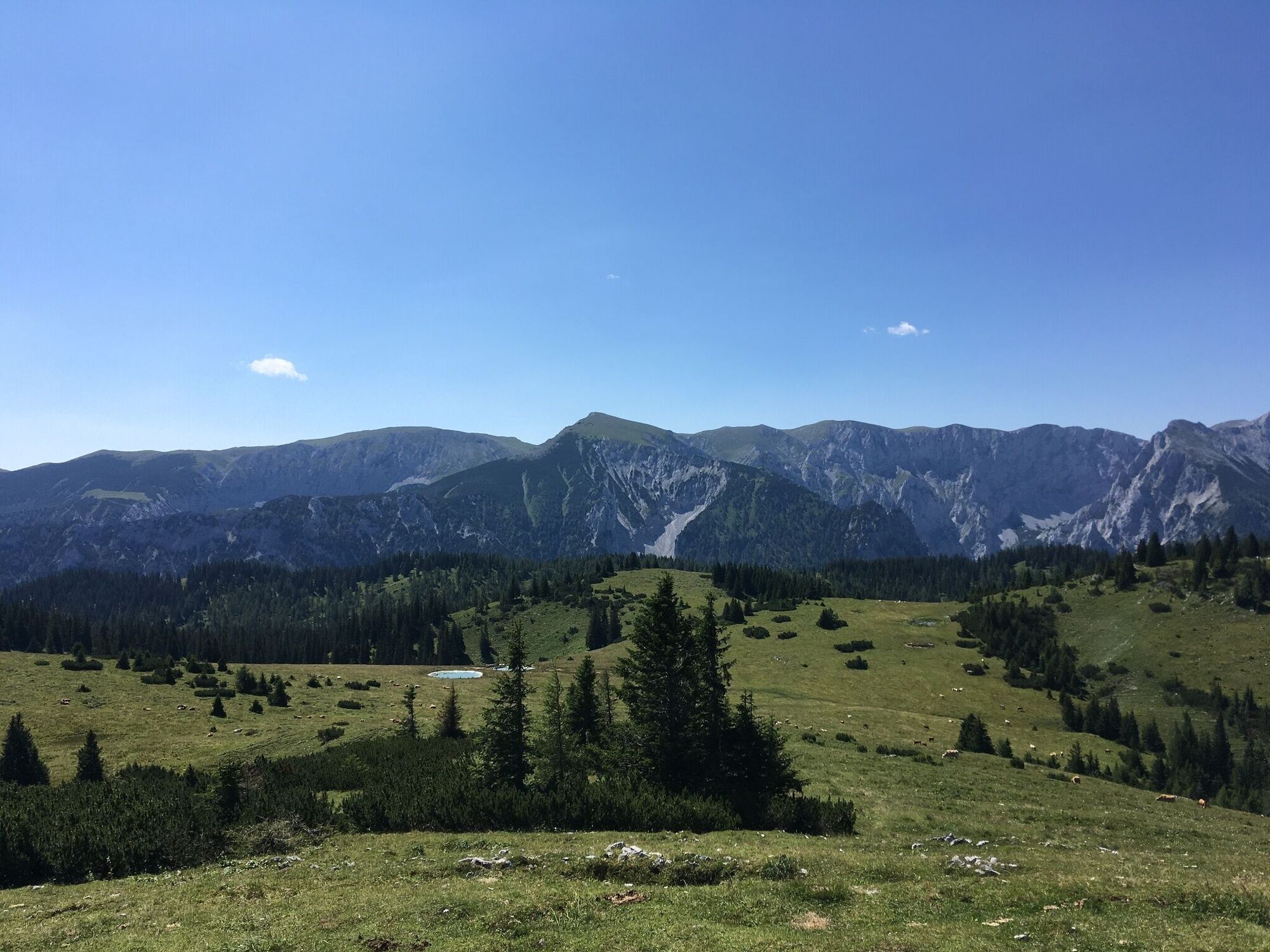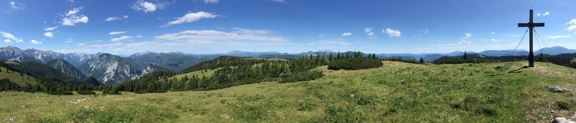 Wer auf den Gipfel möchte, geht rechts - Richtung Zinken - über einen steinigen Steilhang hinauf und oben über die Wiesenflächen weiter auf den Gipfel (1.619 m, herrlicher Panoramablick!) Vom Gipfelkreuz steigen wir in südöstlicher Richtung zur Hinteren Staritzenhütte hinab und gehen dann auf der Almstraße weiter. Kurz danach zweigen wir rechts ab und folgen den Wegspuren talwärts in eine Mulde hinab. Beim Zaun gehen wir links auf dem Steg weiter durch den Wald bis zur Forststraße hinab und diese folgen wir entlang bis Kastenriegel. Wer das Auto bei der Haltestelle hat, folgt links der Forststraße und kommt durch das Ramertal wieder hinaus bis zum Ausgangspunkt bei der Haltestelle