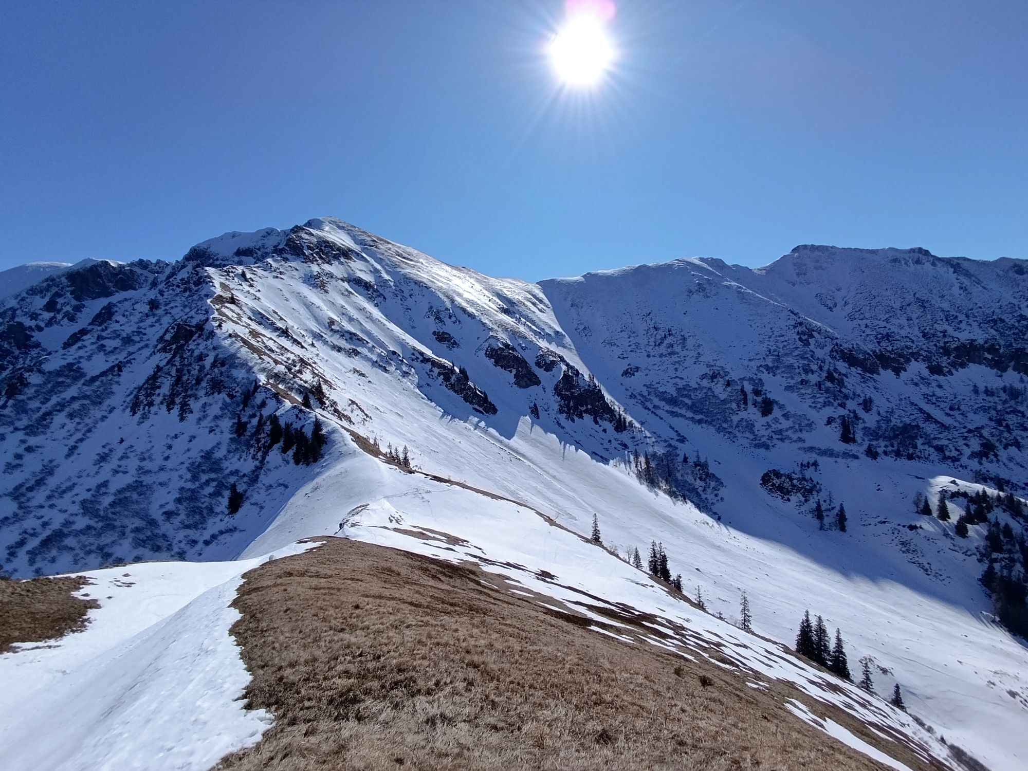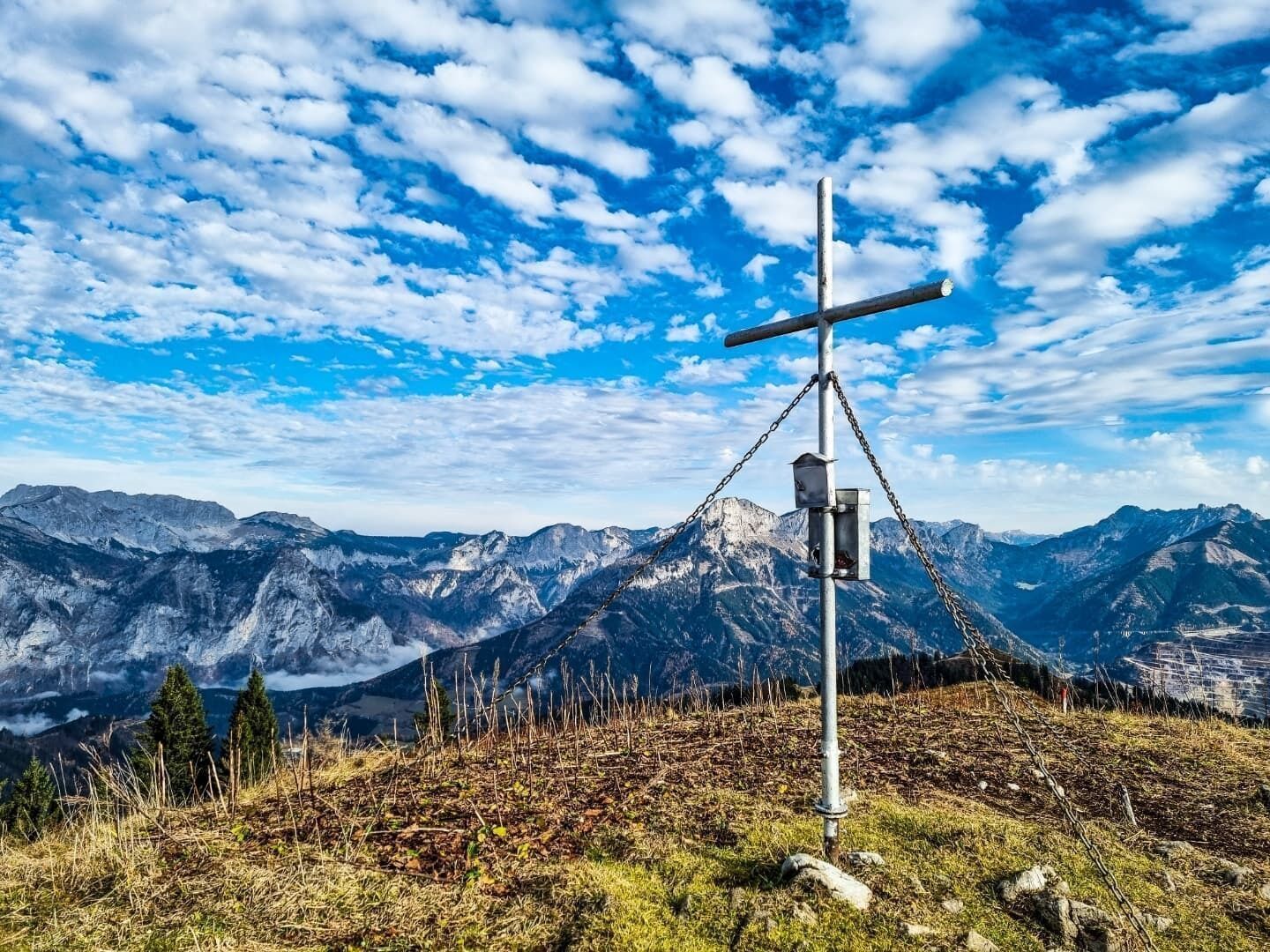 Vom Parkplatz Gemeindealm bei der Panoramatafel wandern wir zuerst taleinwärts über eine Brücke. Gleich danach gehen wir rechts über die Weide zum Hochwald; weiter der Markierung folgend (Wasserfallsteig), über Serpentinen hinauf bis zu einem Rastplatz. Wir wandern weiter durch einen Wald zu einem ebenen Almboden, diesen entlang leicht ansteigend bis zum nahenden Gipfel.