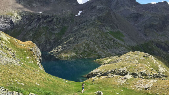 Leave the car park and follow the Lago del Narèt reservoir up to the pass and then through the somewhat barren Coro valley up to the Bocchetta del Lago Nero. The Lago Nero is below right, and with a little luck you might see chamois and ibex.