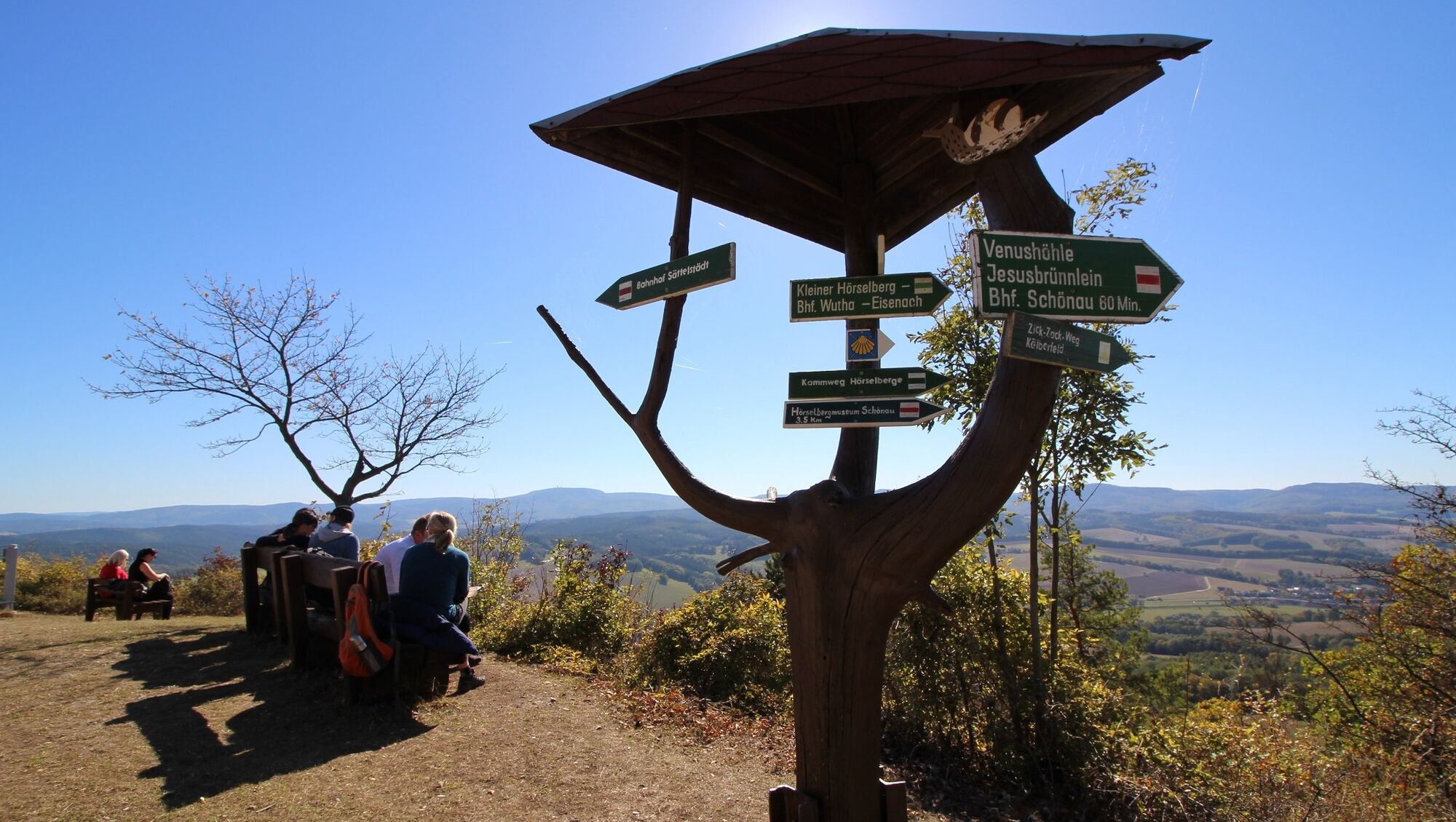 Enjoy the great view from the summit (484.2 meters) with views of the northwestern part of the Thuringian Forest, the Wartburg, and the opposite Inselsberg.
