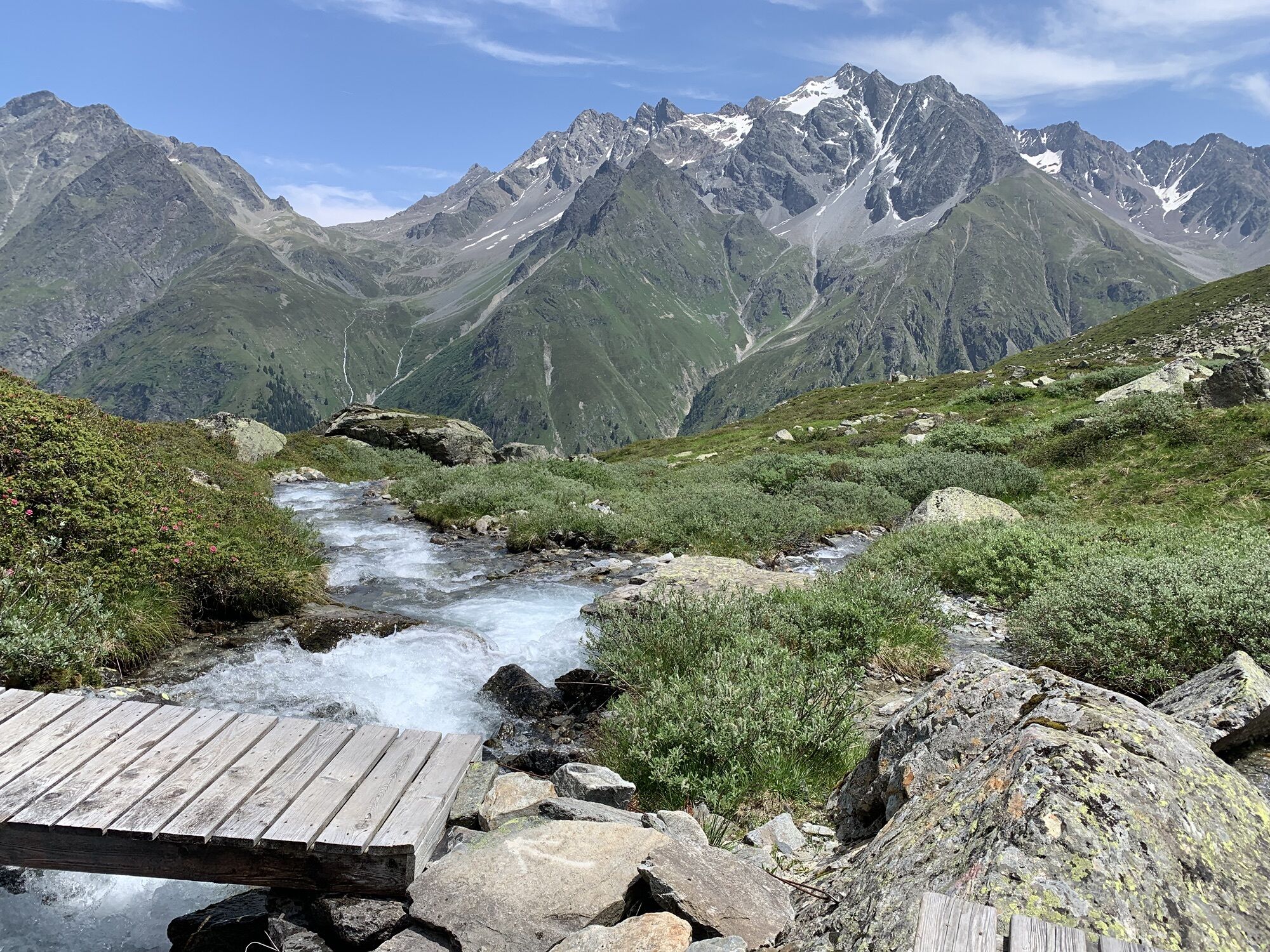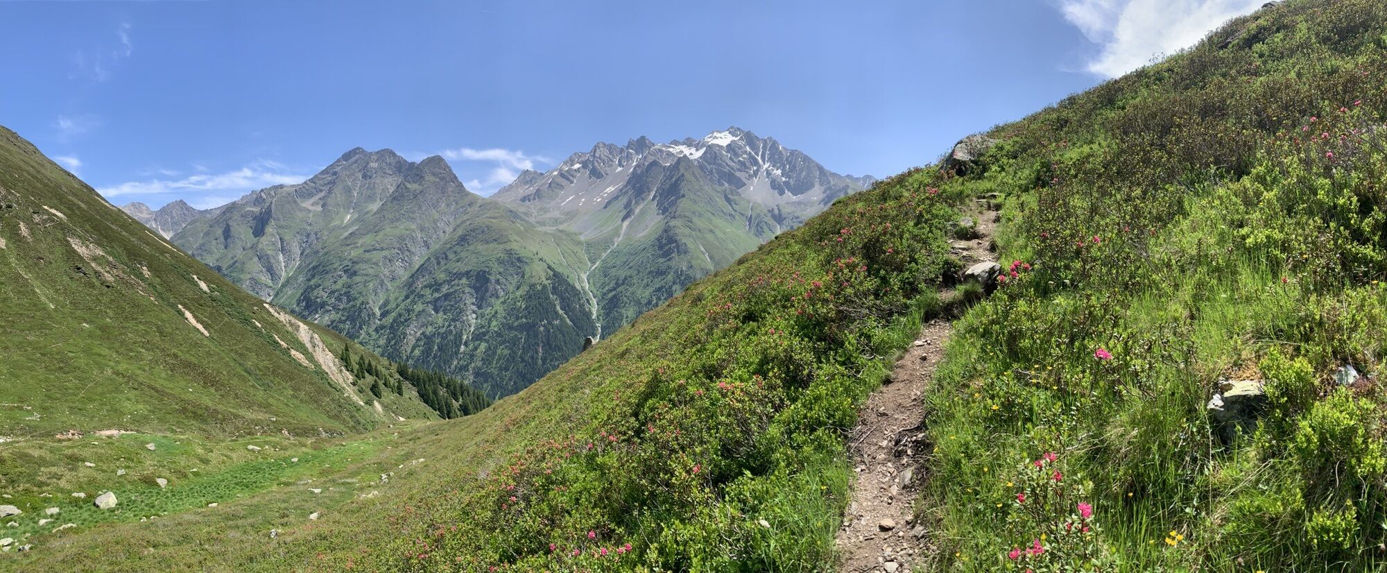 Dem Gebirgsbach folgend talwärts, dann auf dem Almenweg bis zur Neururer Alpe. Von dort auf dem steilen Talabstieg nach Trenkwald. Mit dem Bus (oder zu Fuß: + 5 Km) zurück nach Mandarfen.