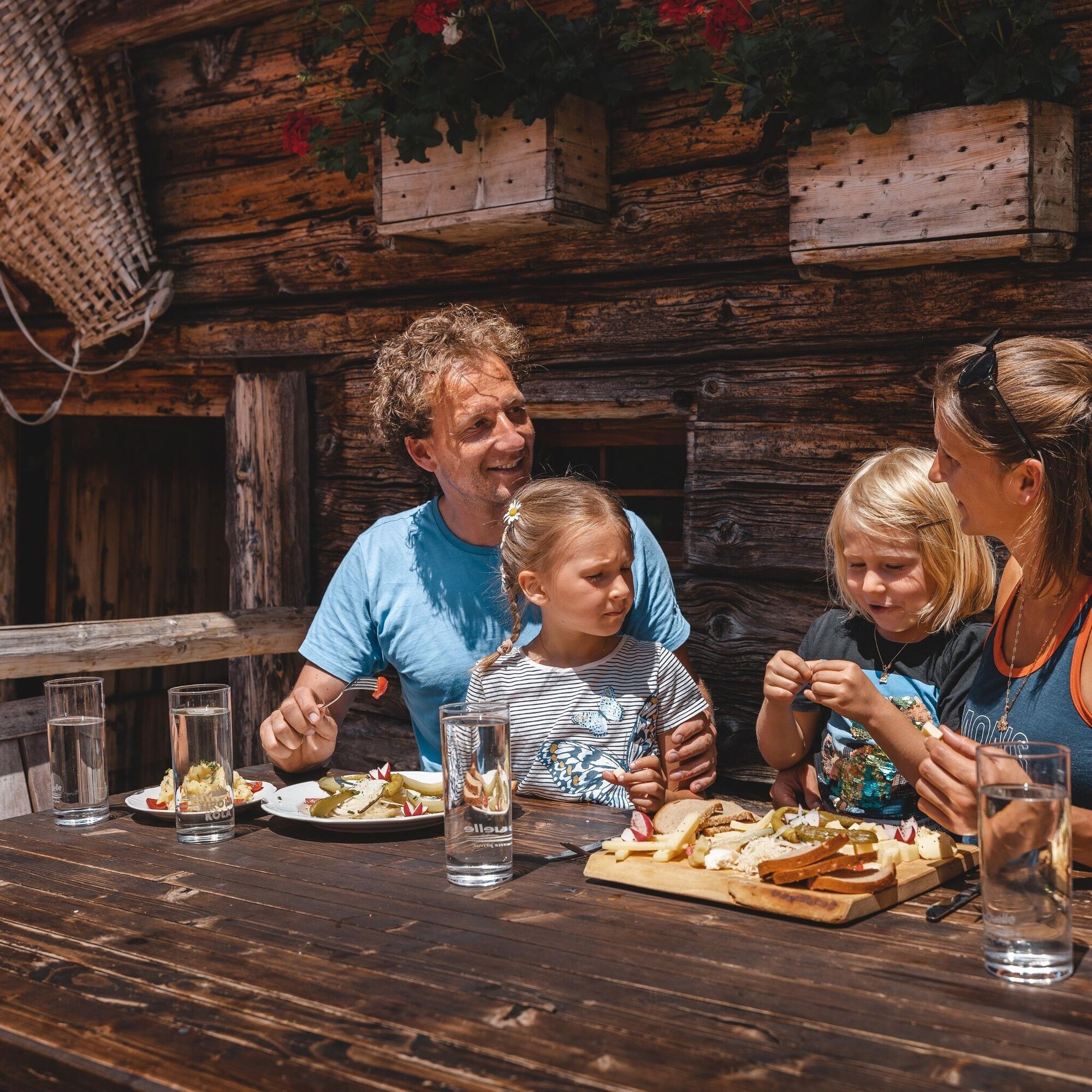 Genieße auf der großen Sonnenterrasse oder der gemütlichen Stube ein leckeres Wiener Schnitzel oder die Tirol Pur Hüttenjause. Achte auf die Öffnungszeiten der Farmkehralm