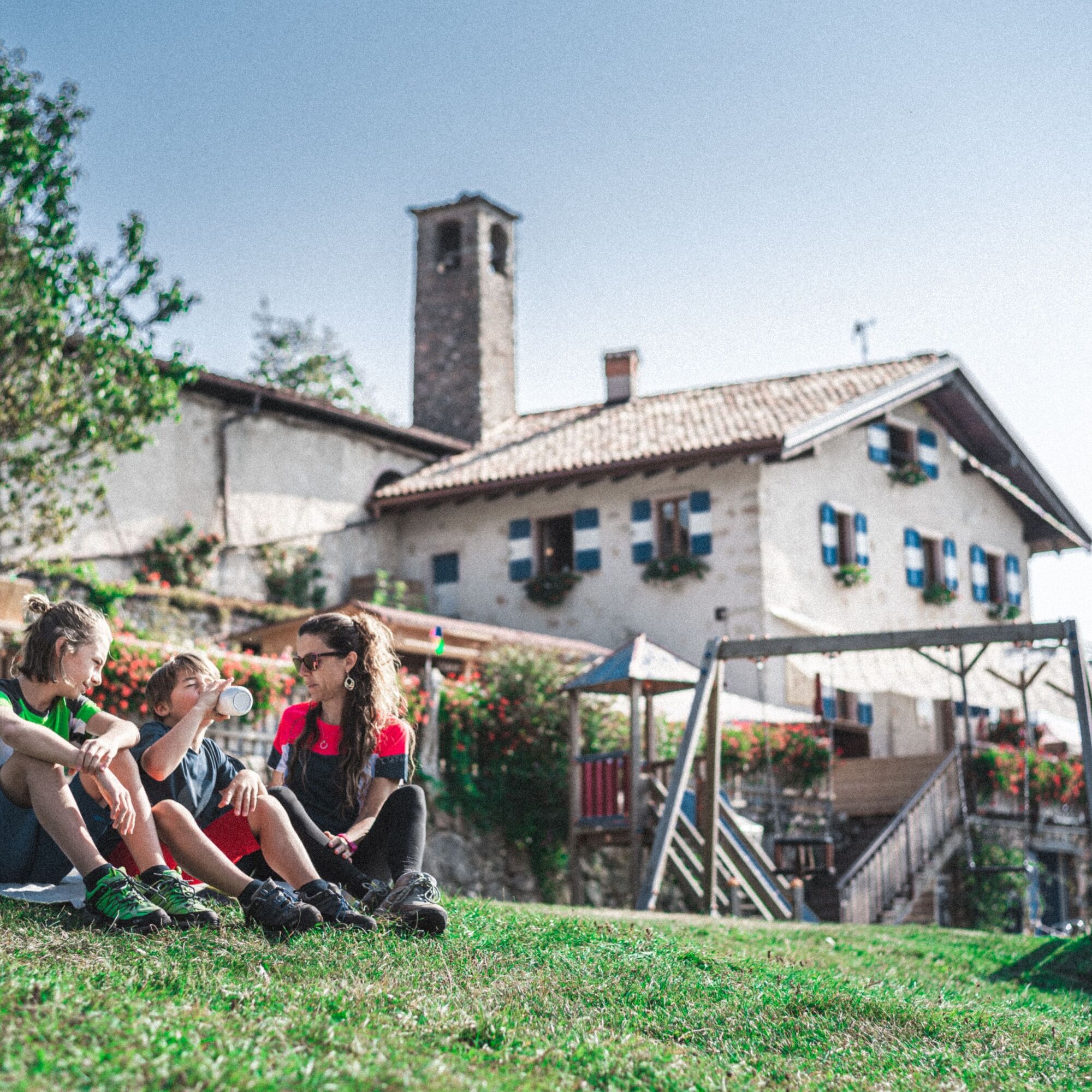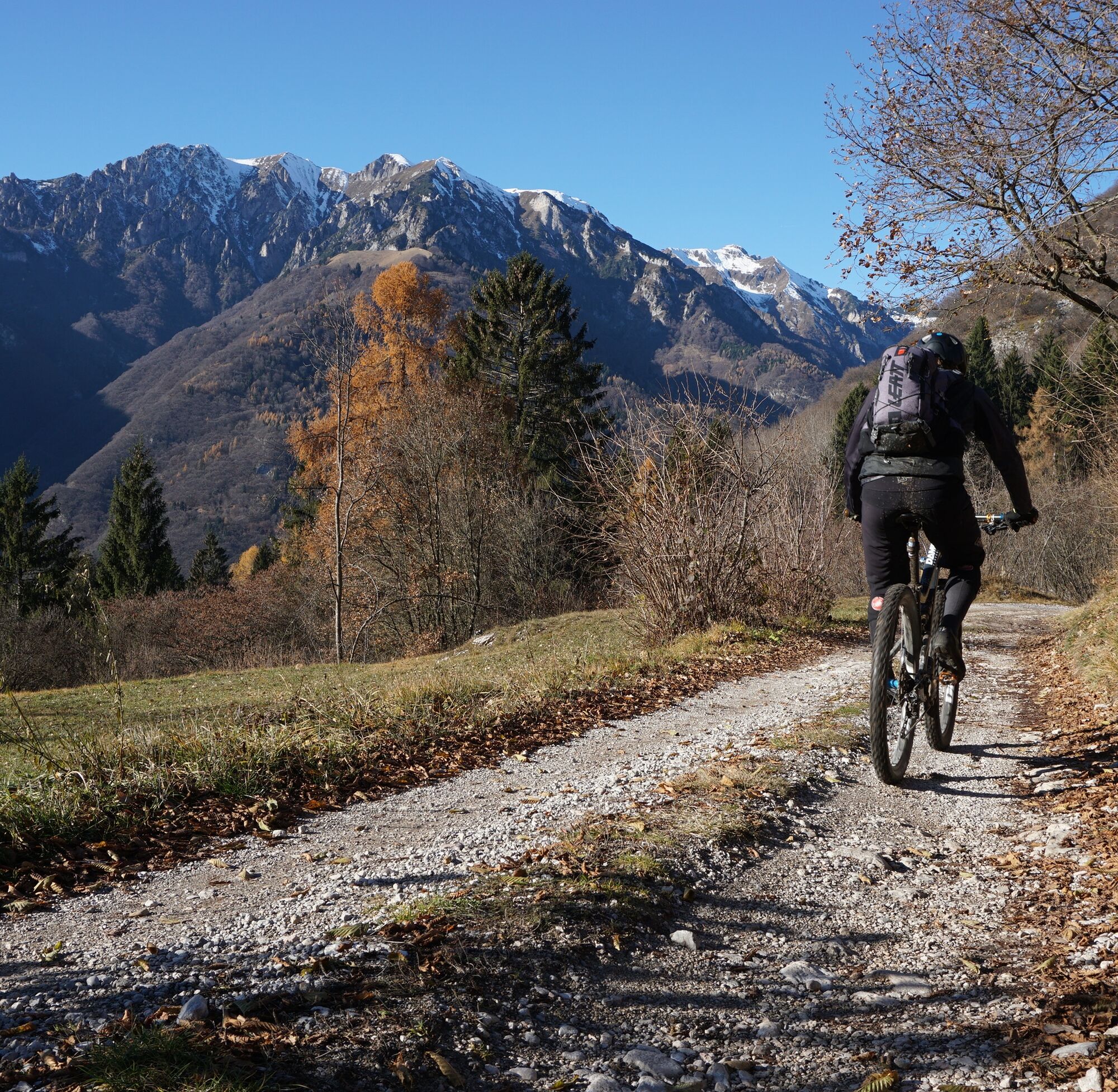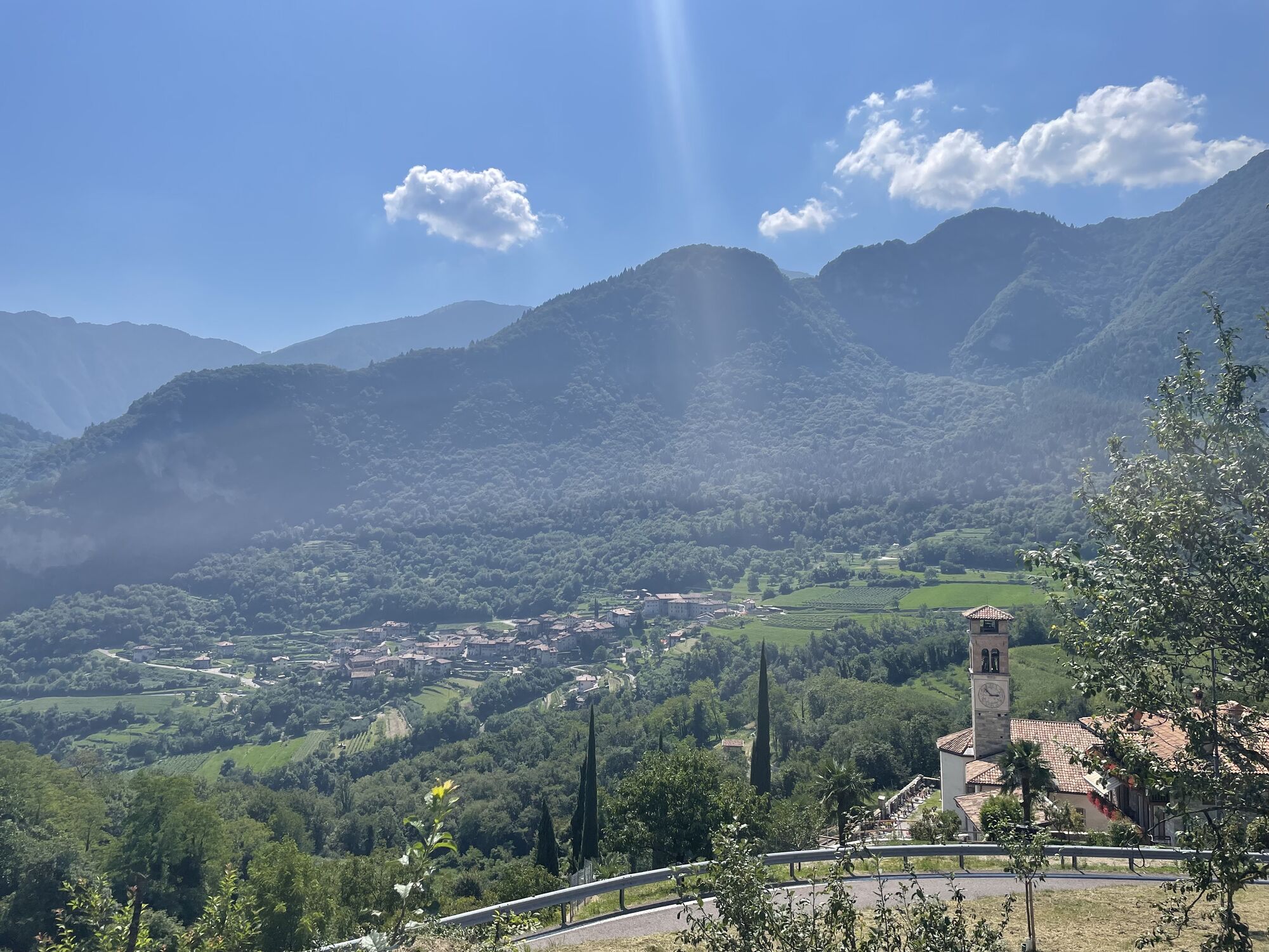 After a short stretch on asphalt, we leave the road to take the gravel path on the other side. This fairly steep path leads to the church of Sant'Antonio in Ville del Monte. We ride behind the church and then continue uphill on the main road, then turn right and take the winding asphalt road to the medieval village of Canale di Tenno.