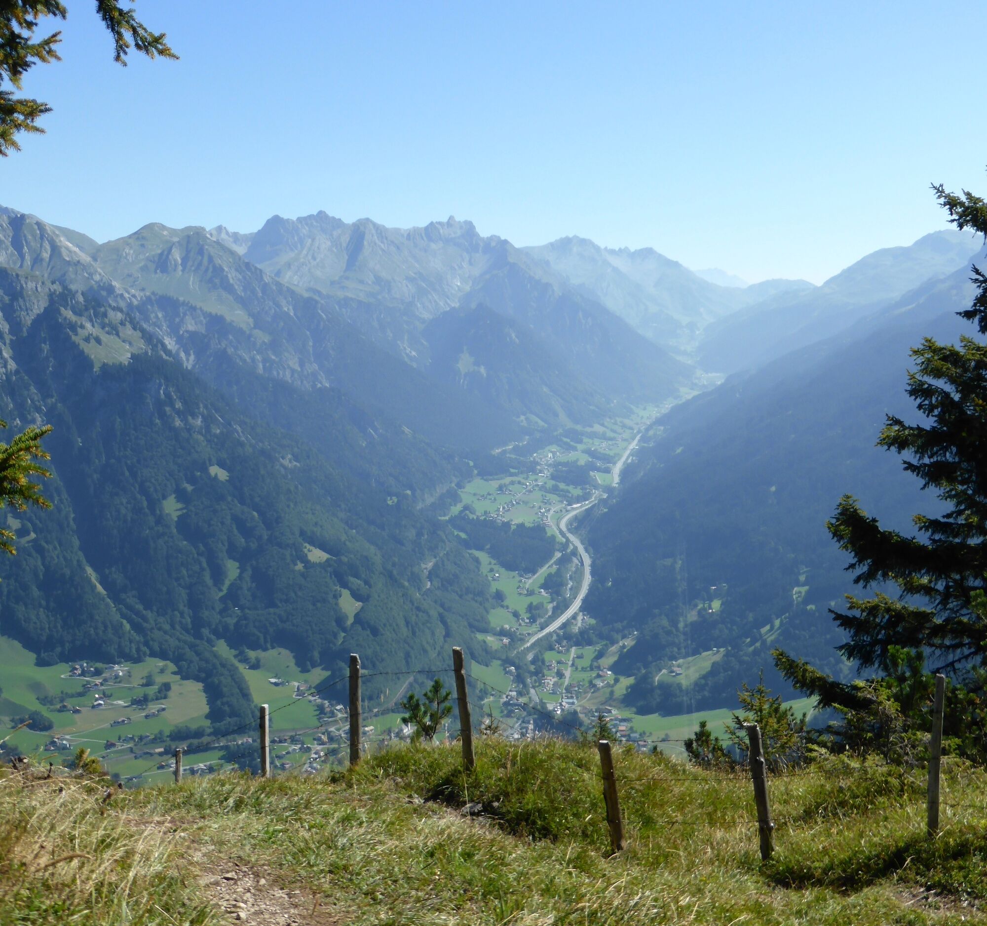 Ein ansteigender Weg führt vom Gasthaus Mühle (1150 m) über Bozis und Amaslegi und über Falla zum Aussichtspunkt Ganzaleita (1600 m), abwärts zum Kristbergsattel (1430 m) und zu den Gaststätten Knappastoba oder Gasthof Kristberg. Der Weg zurück zum Ausgangspunkt führt in Richtung Innerberg über Glän.