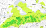 Heute meist bedeckt, südlich des Mains verbreitet Regen, dabei in den südöstlichen Regionen anfangs noch Glatteisgefahr. Im Bergland gebietsweise geringer Schneefall. Höchstwerte von vereinzelt -1 Grad in den östlichen Mittelgebirgen und bis +5 Grad am Untermain. Schwacher bis mäßiger Wind um Südost.
